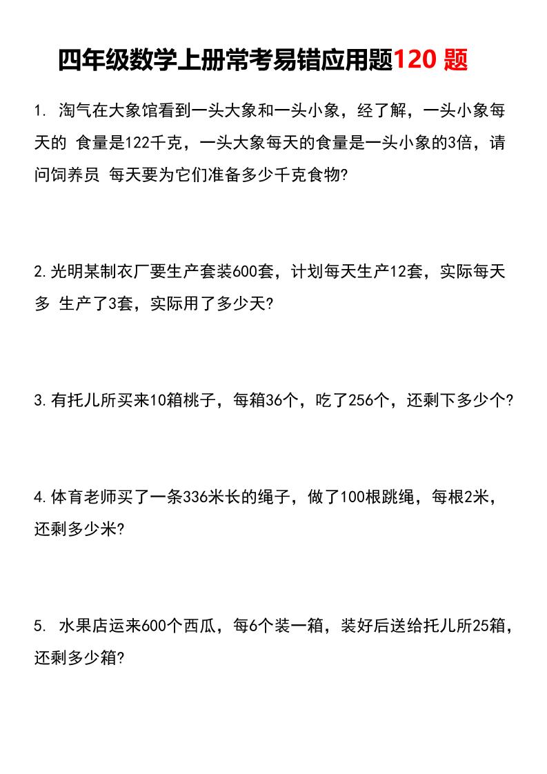四(上)数学(通用版)常考易错应用题题(通用)