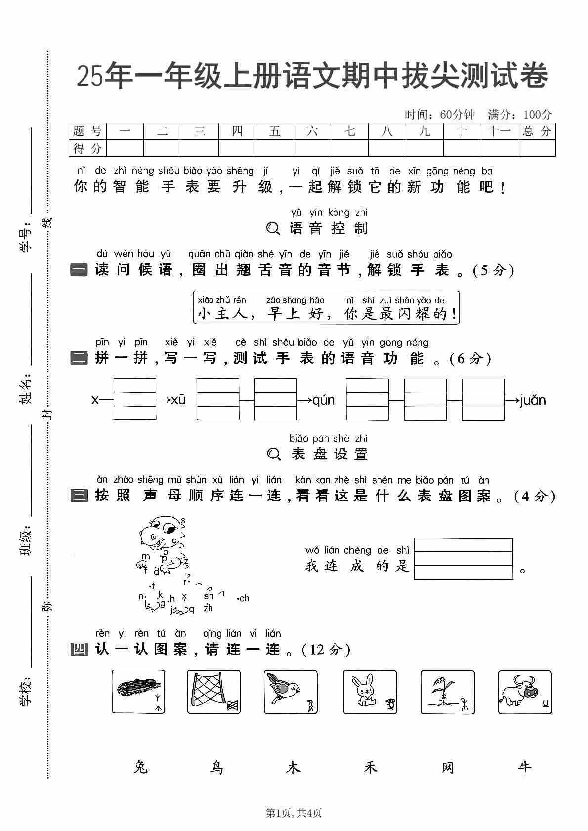 25年一年级上册语文期中拔尖测试卷