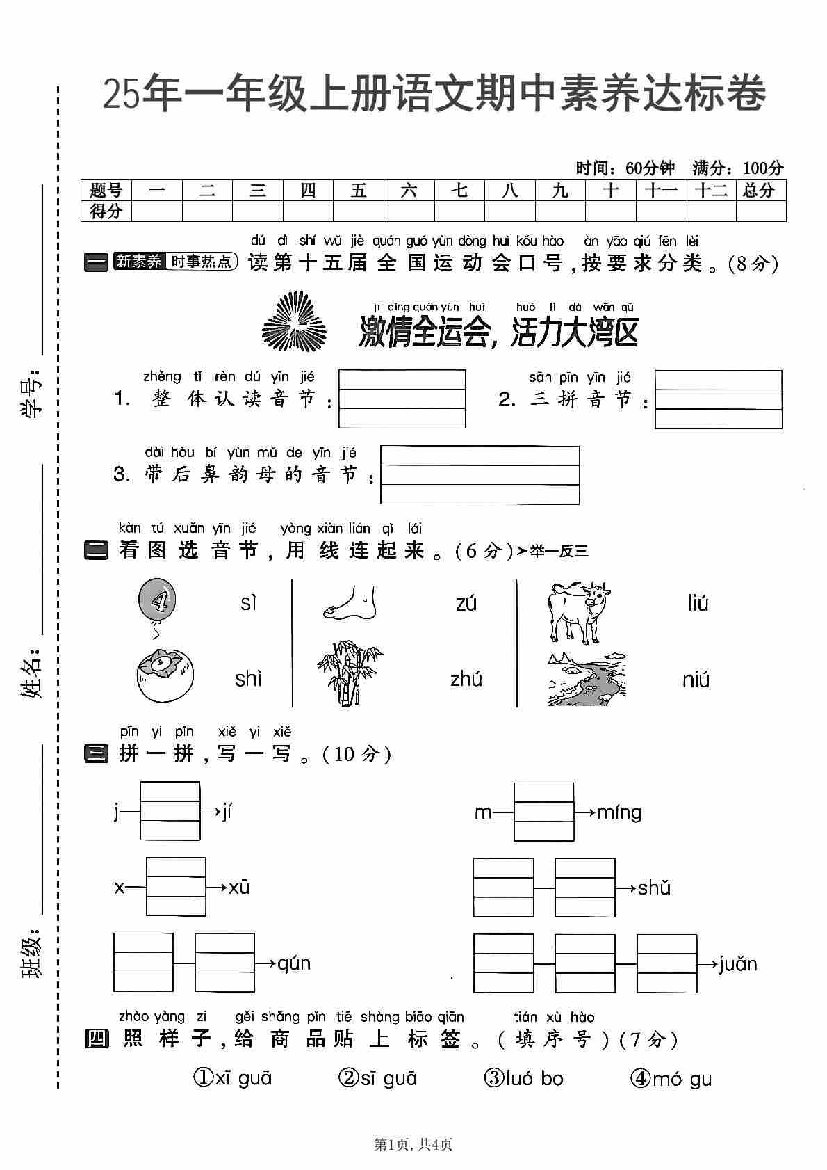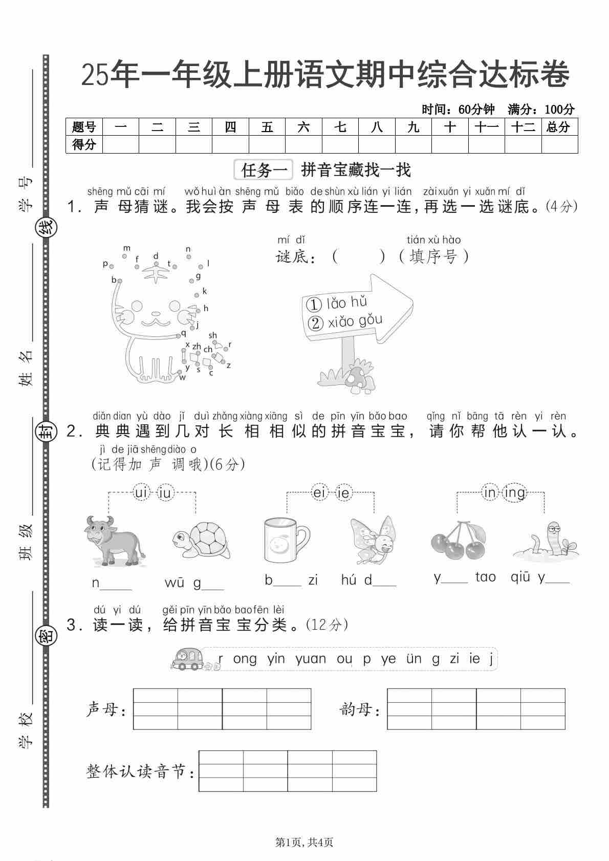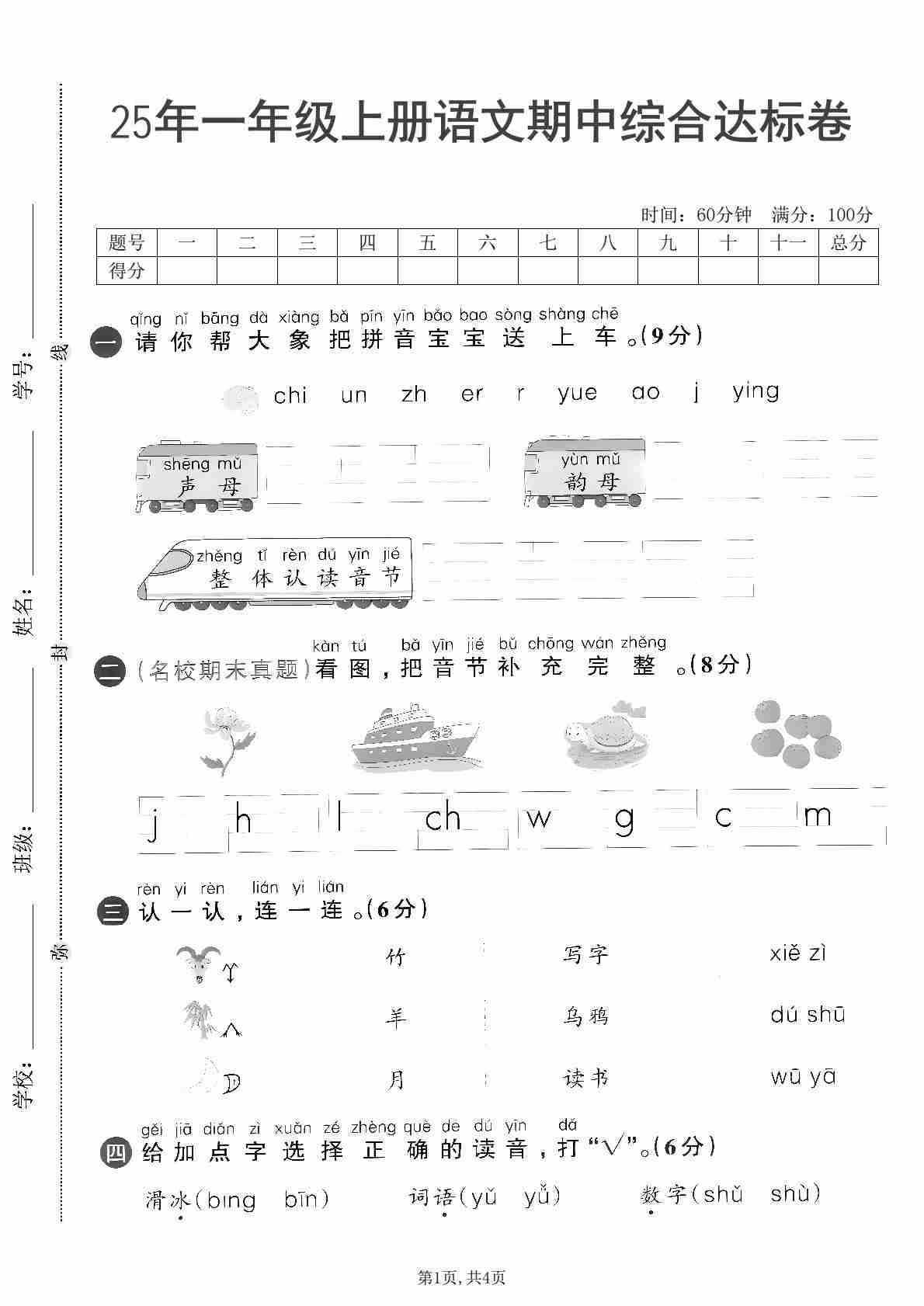 25年一年级上册语文期中综合达标卷