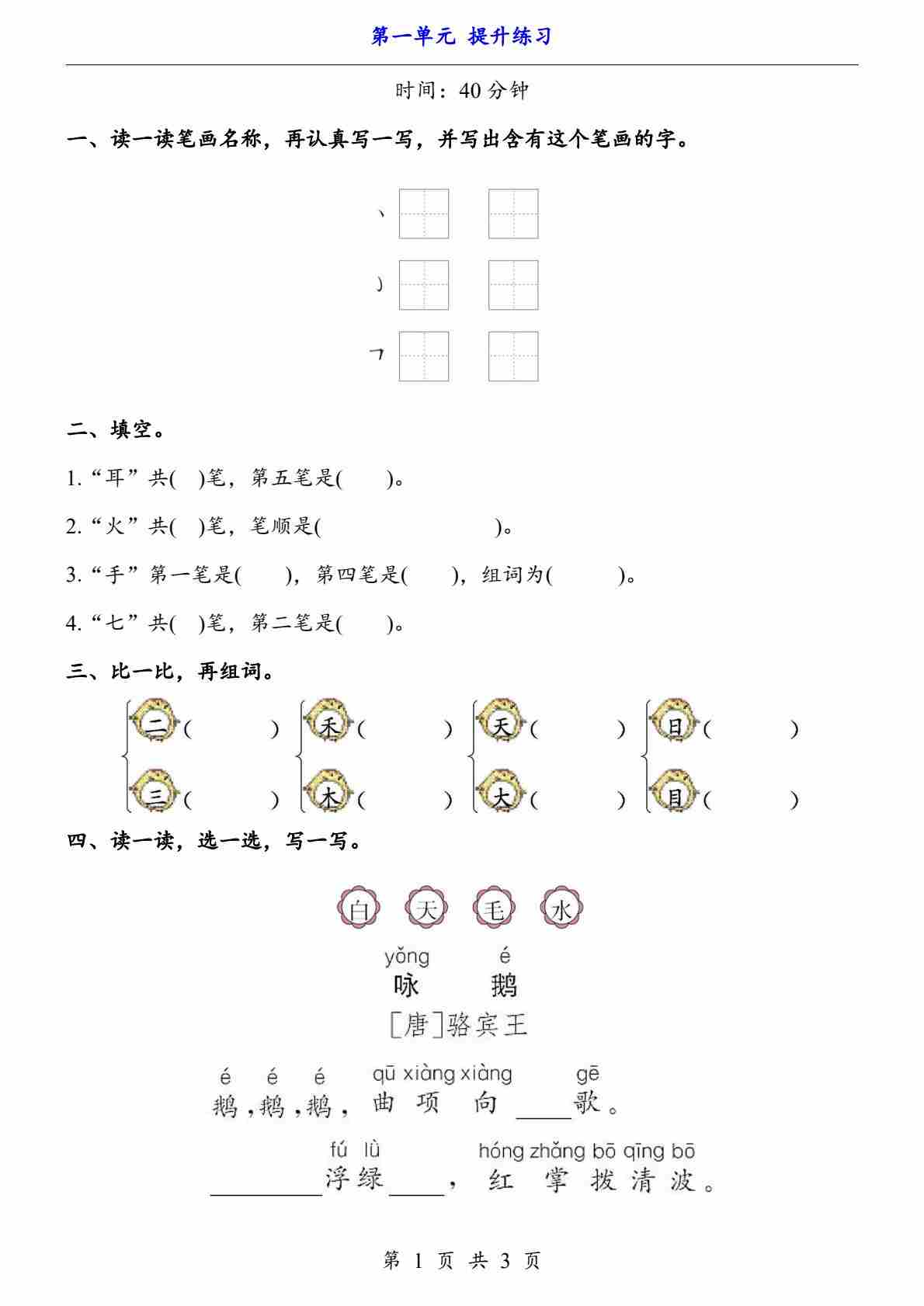 新一上语文第一单元提升练习3页