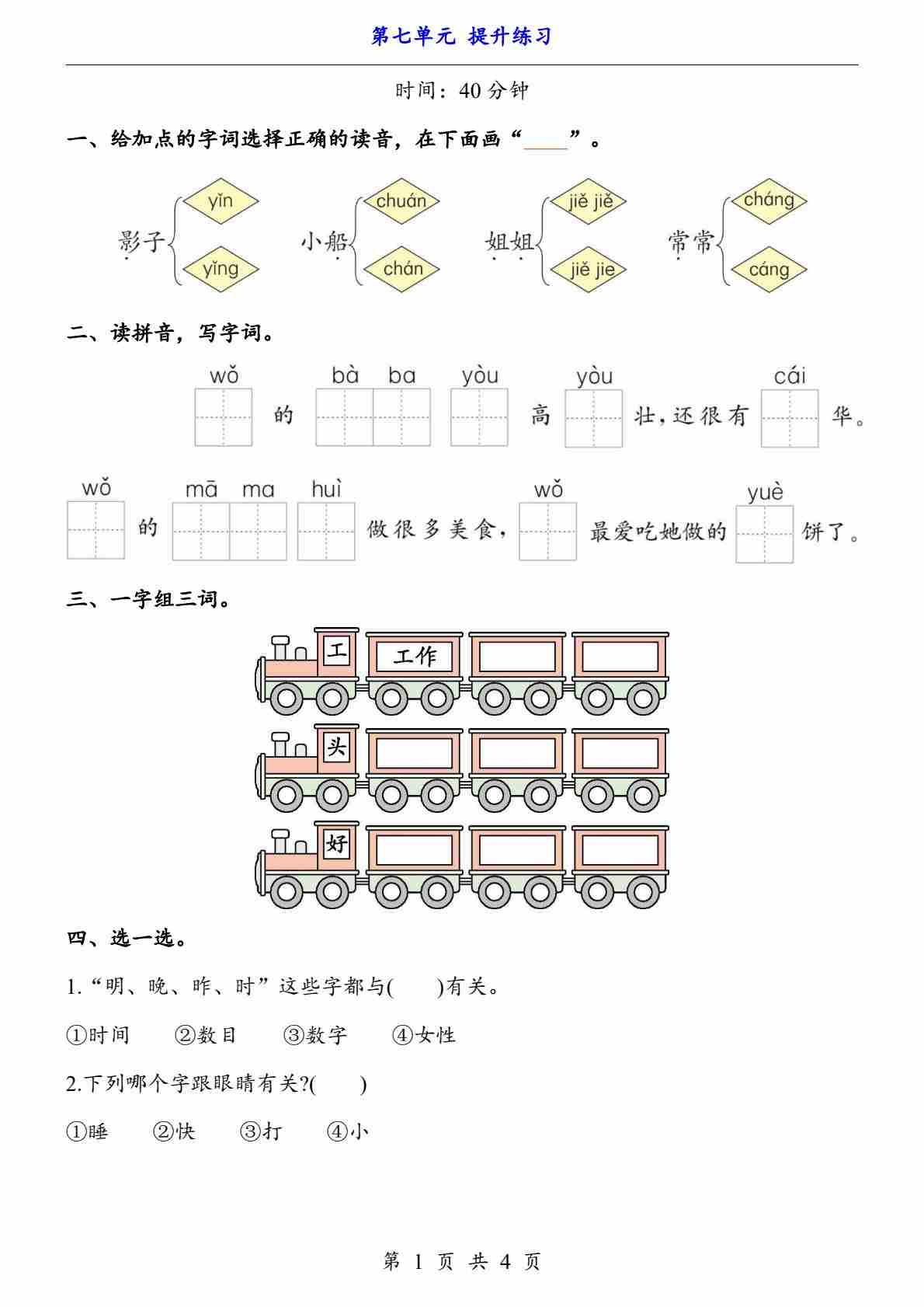 新一上语文第七单元提升练习4页