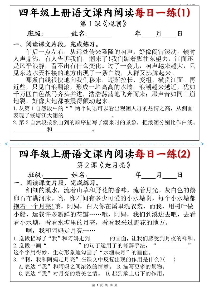 四(上)语文【课内阅读每日一练(含答案18页)】