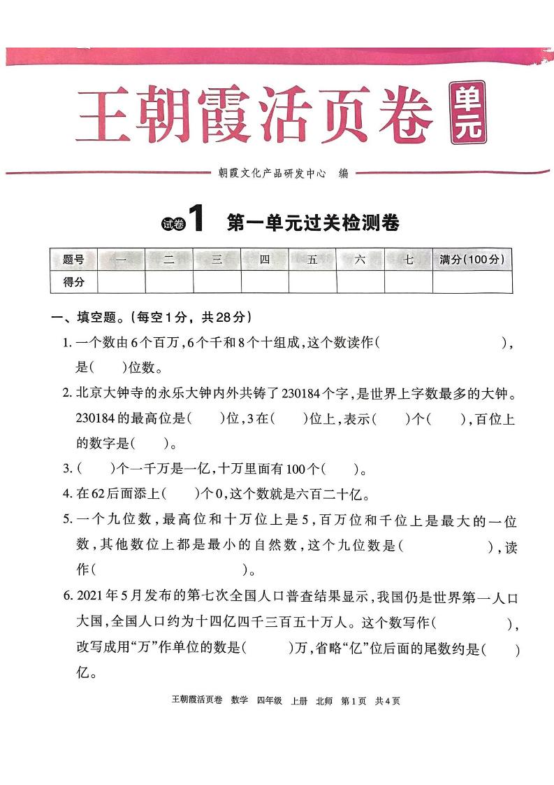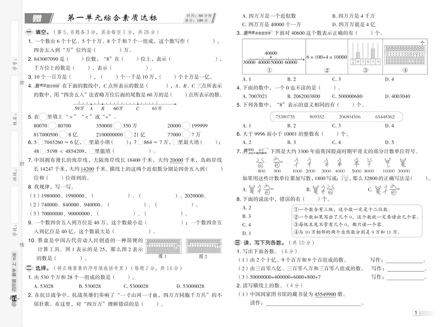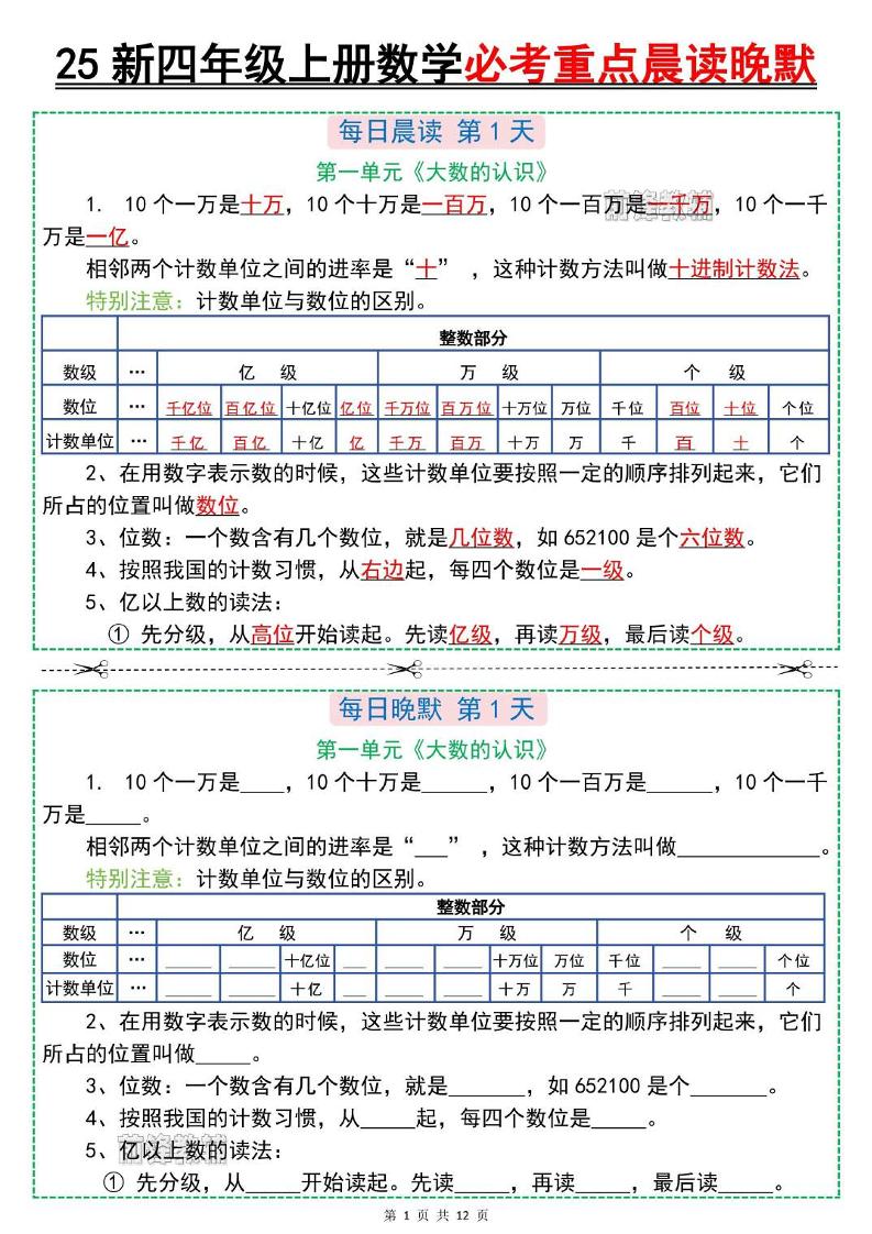 四(上)数学25新必考重点晨读晚默(千亿位)