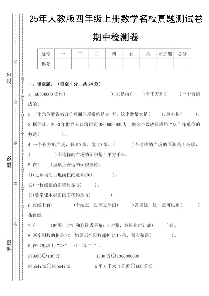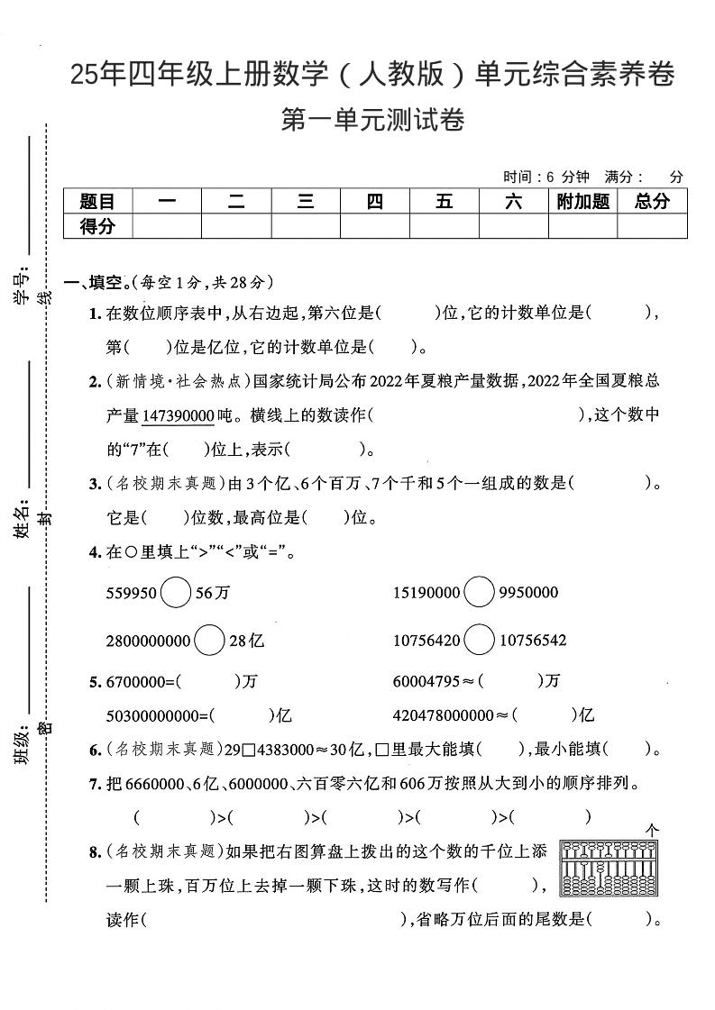 四(上)数学25年(人教版)单元综合素养卷