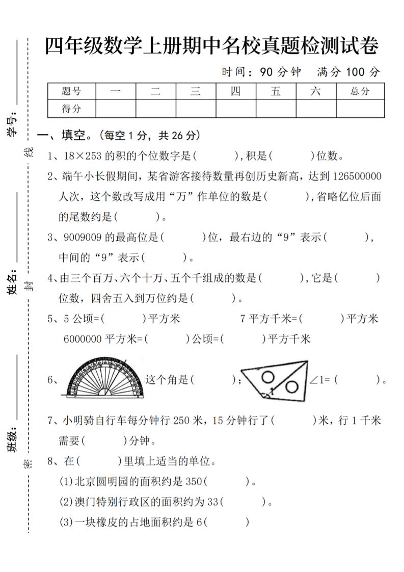 四(上)数学期中名校真题检测试卷(1)