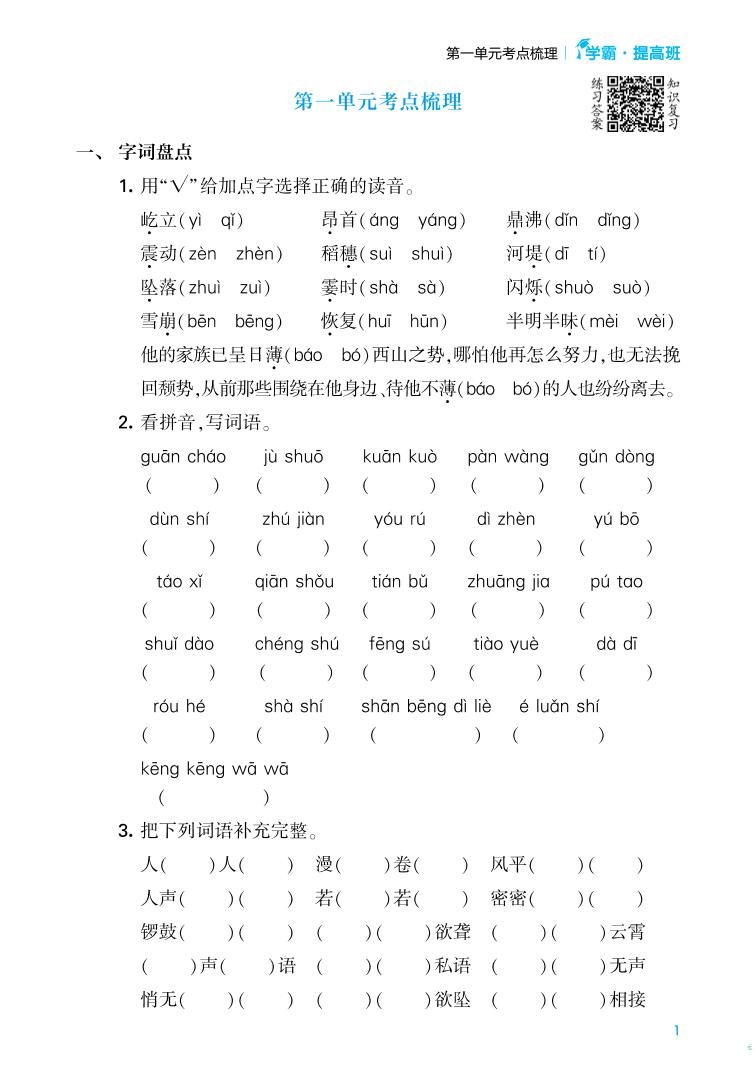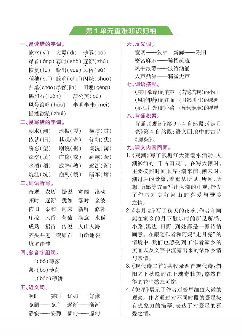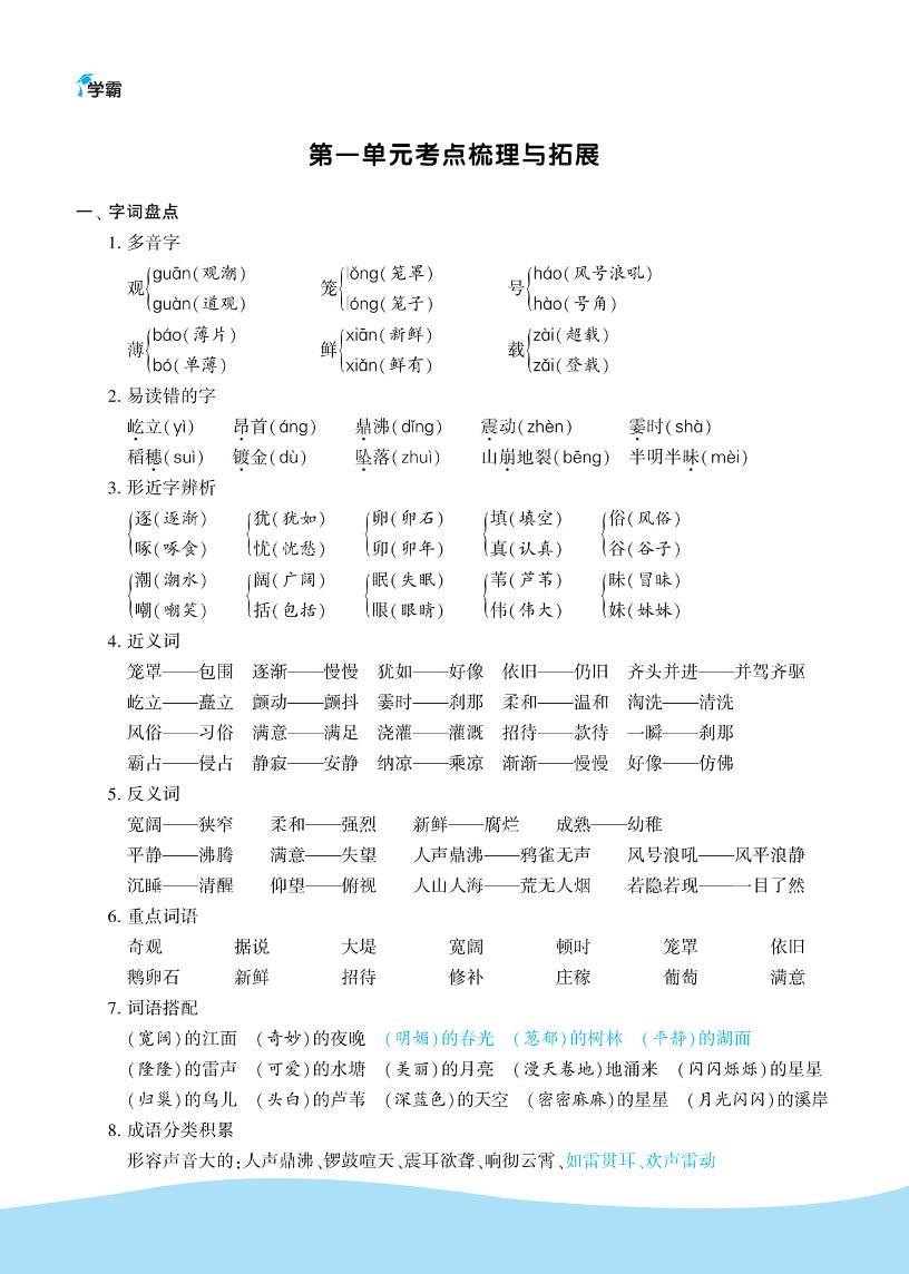 四(上)语文第一单元考点梳理