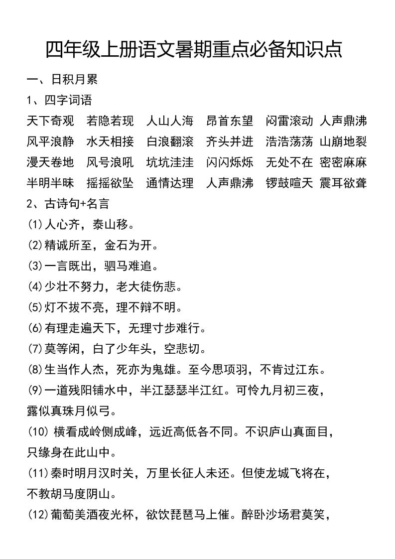 四(上)语文暑期重点必备知识点