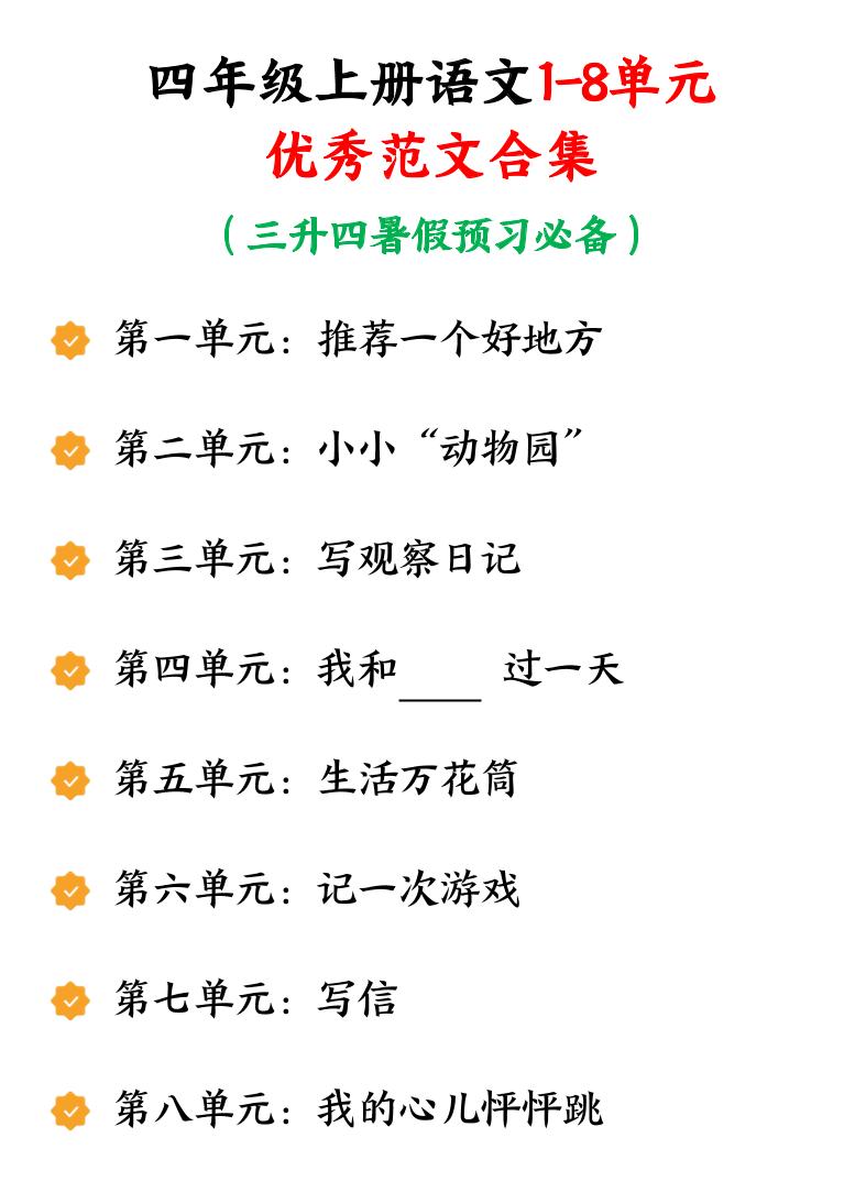 四(上)语文【1-8单元优秀范文合集(9页)】