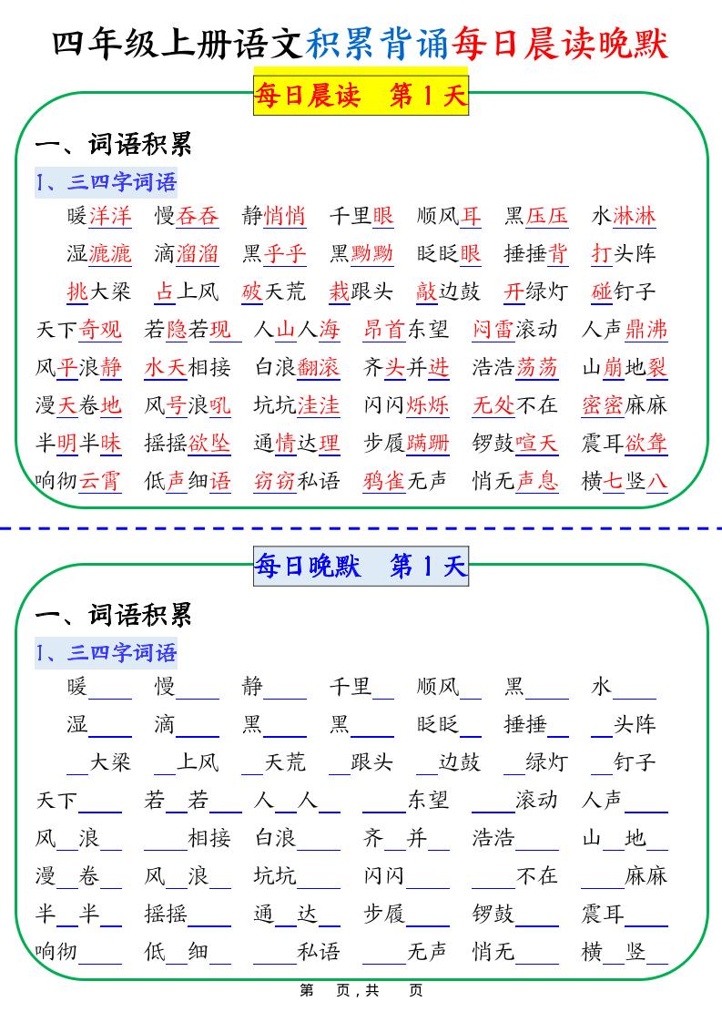 四(上)语文【每日10分钟默写小纸条68天(含答案47页)】