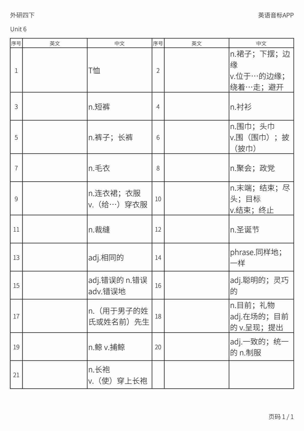 2026春外研版英语四下 Unit 6 英汉互译