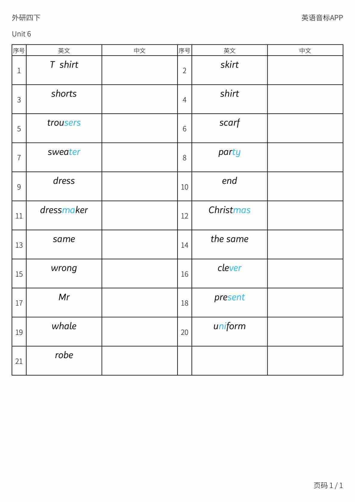 四下英语外研单词音频