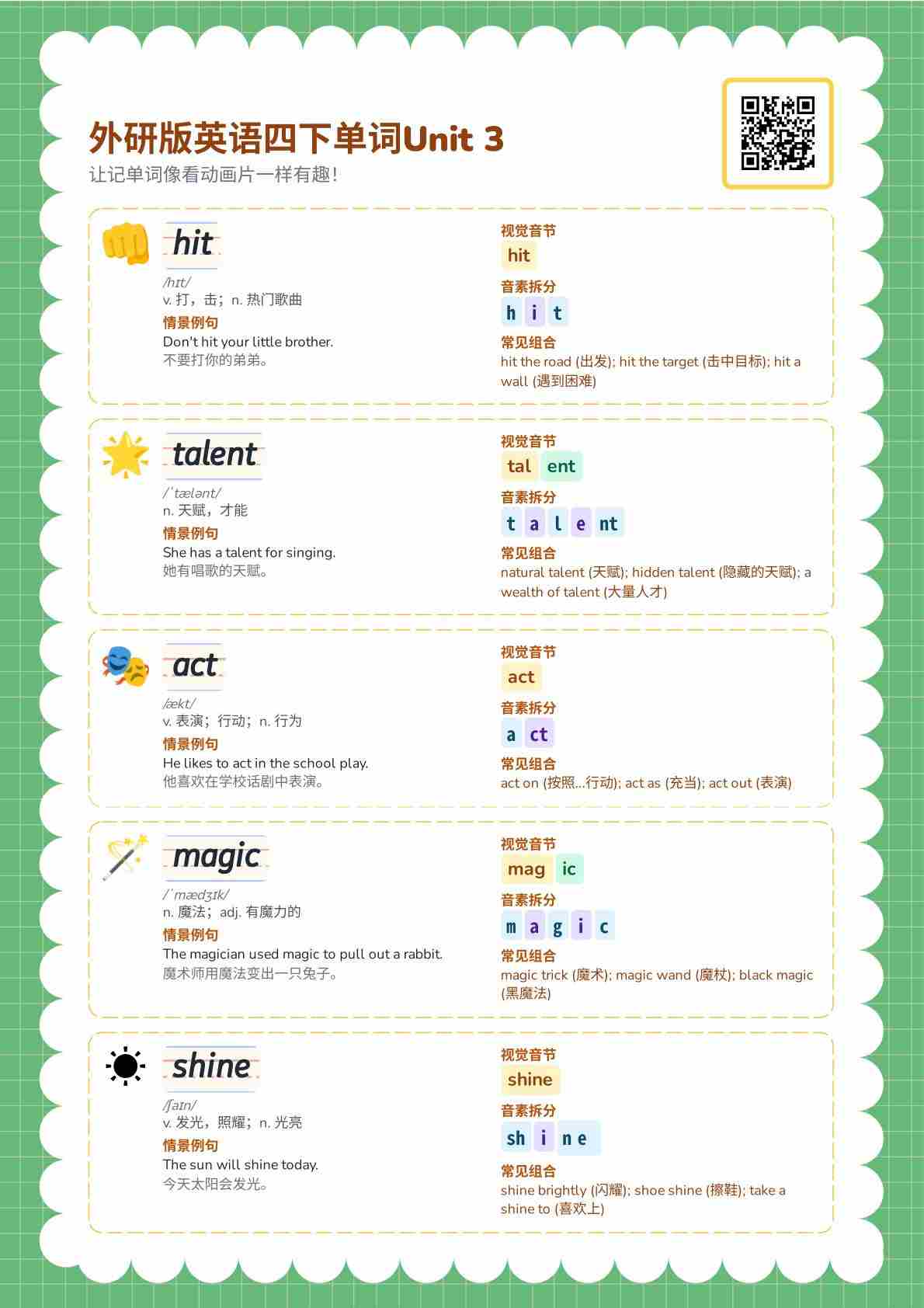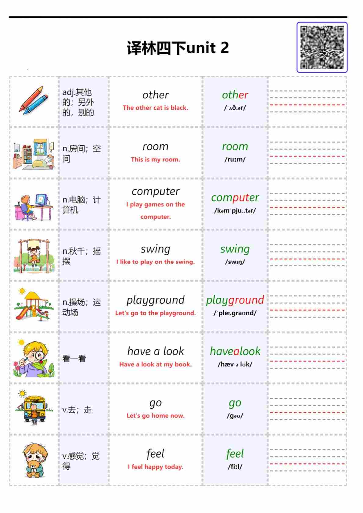 2026春译林英语四下自然拼读 Unit 2