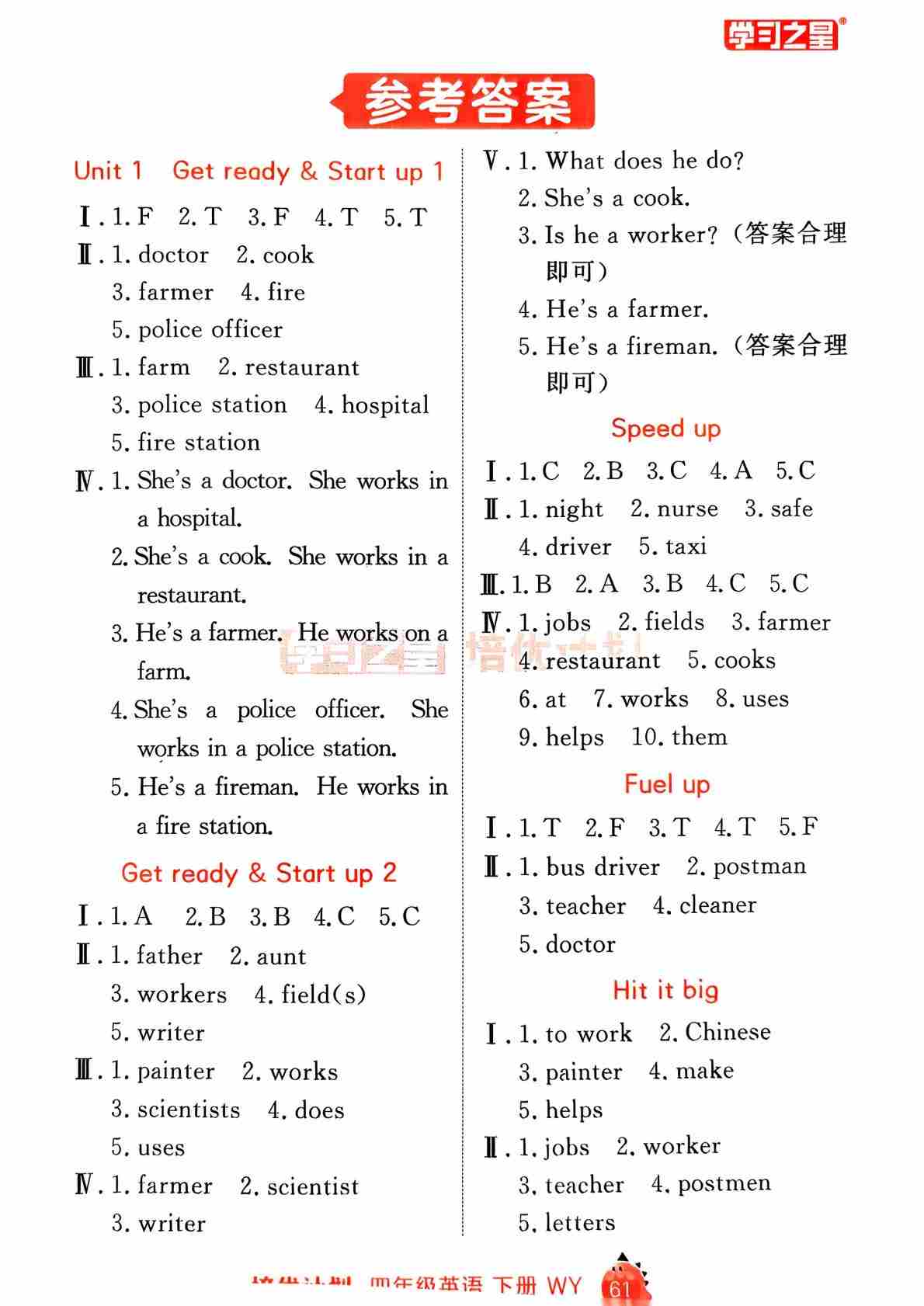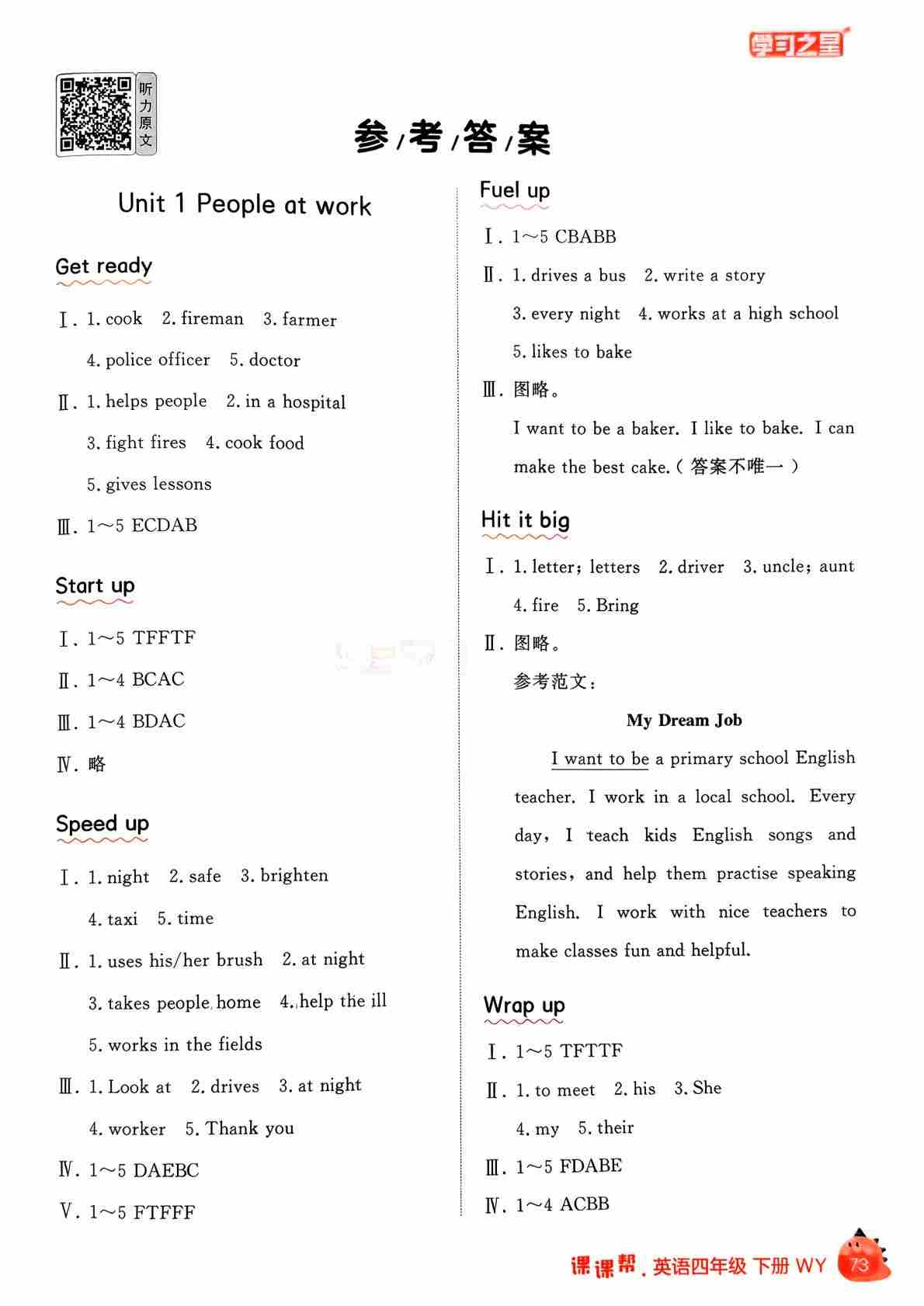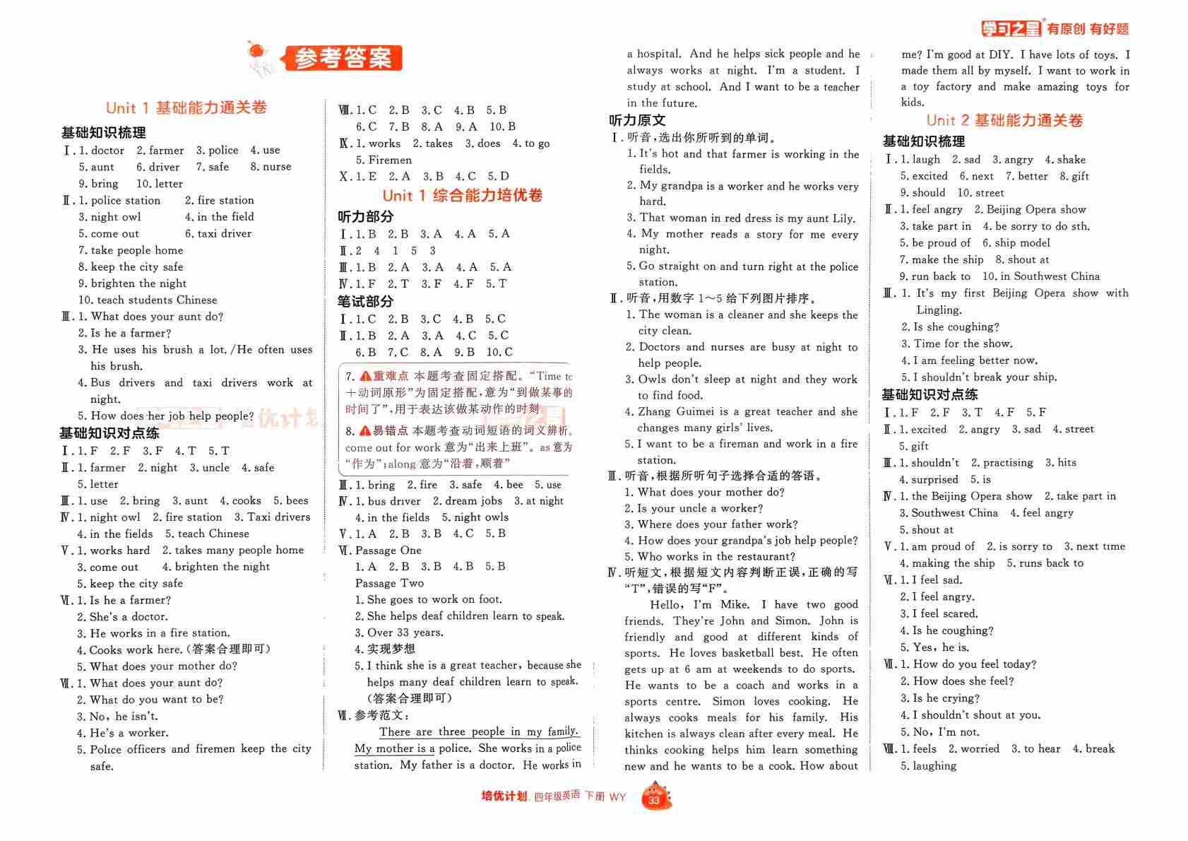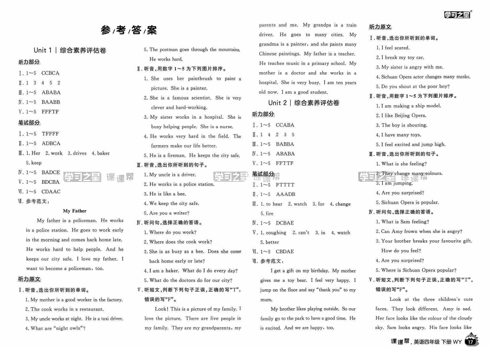 四下课课帮册答案
