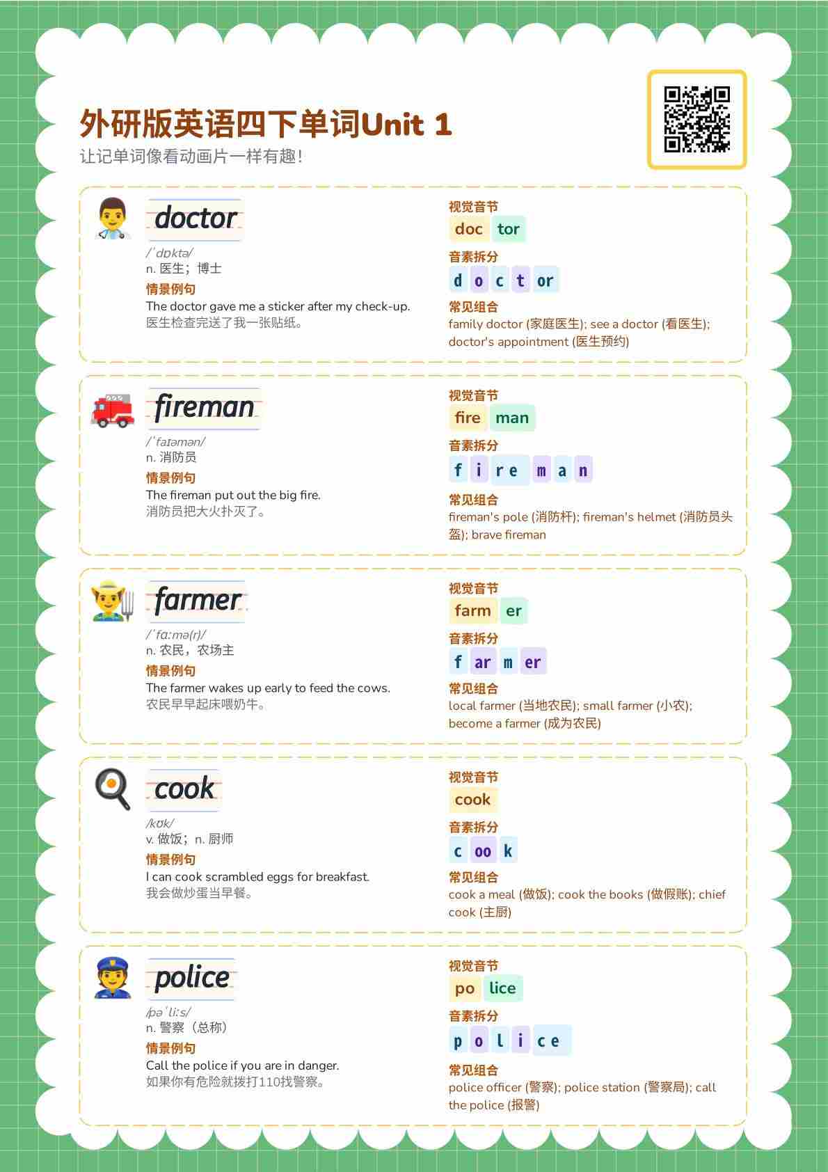 2026春译林英语四下自然拼读 Unit 1