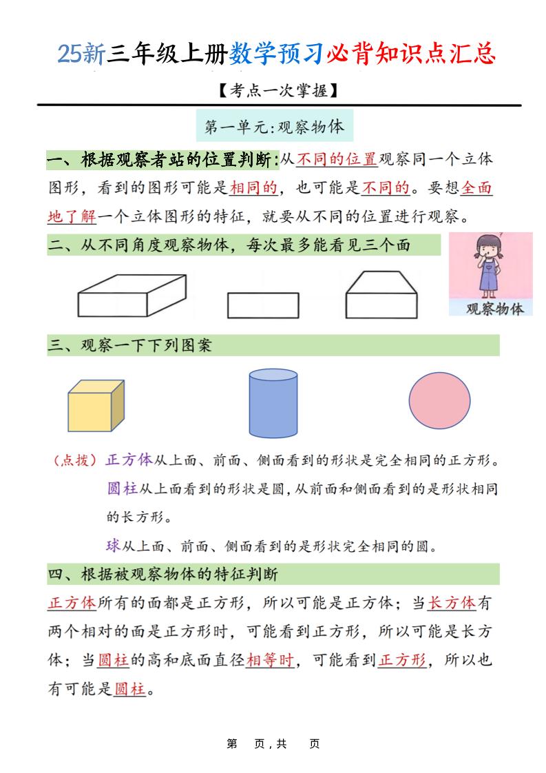 三(上)数学新暑假预习必背公式晨读晚默(9天)