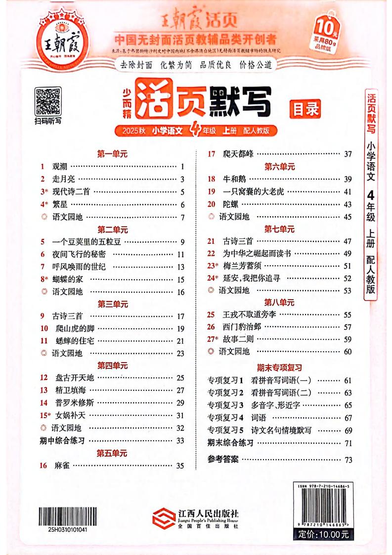 四(上)语文【25秋-黄冈小状元作业本(答案)】