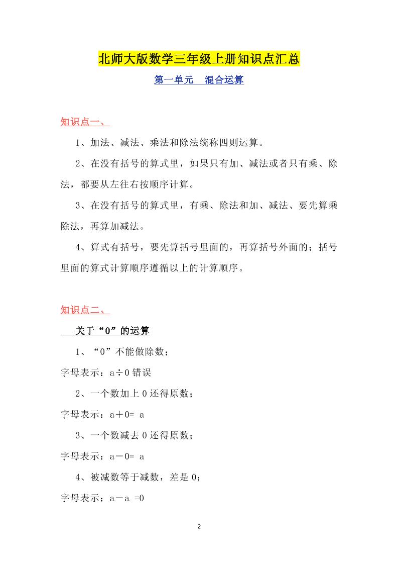 三(上)北师大数学知识点汇总