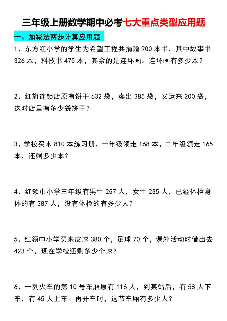 【25新三上数学混合运算应用题八大专项(含答案10页)