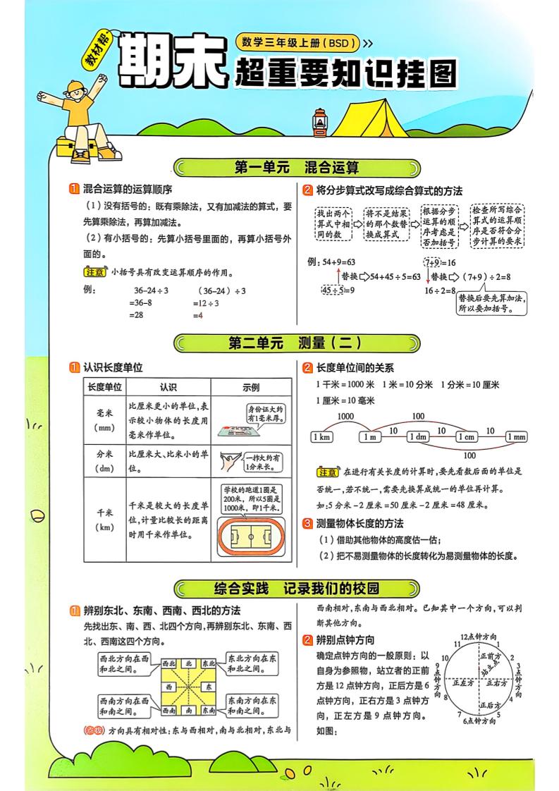 三(上)数学北师版:25秋期末重要知识汇总挂图
