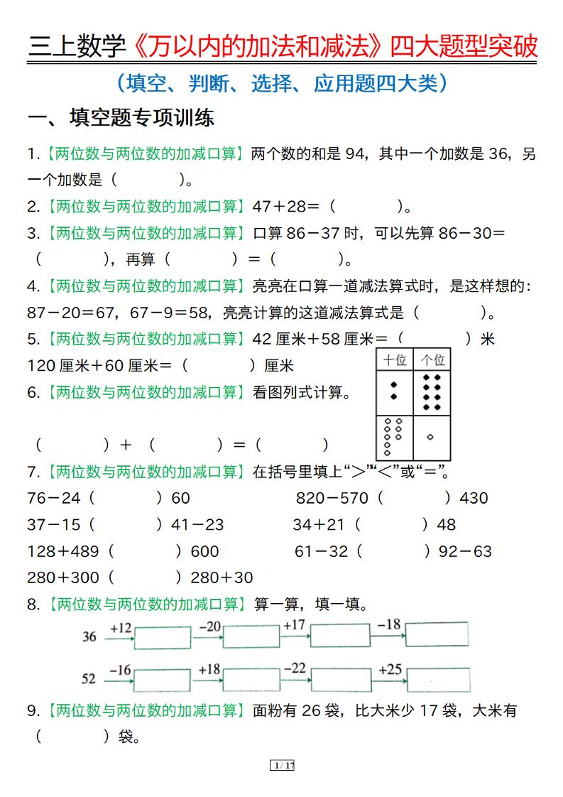 三(上)25秋数学万以内的加法和减法四大题型突破专训(17页)