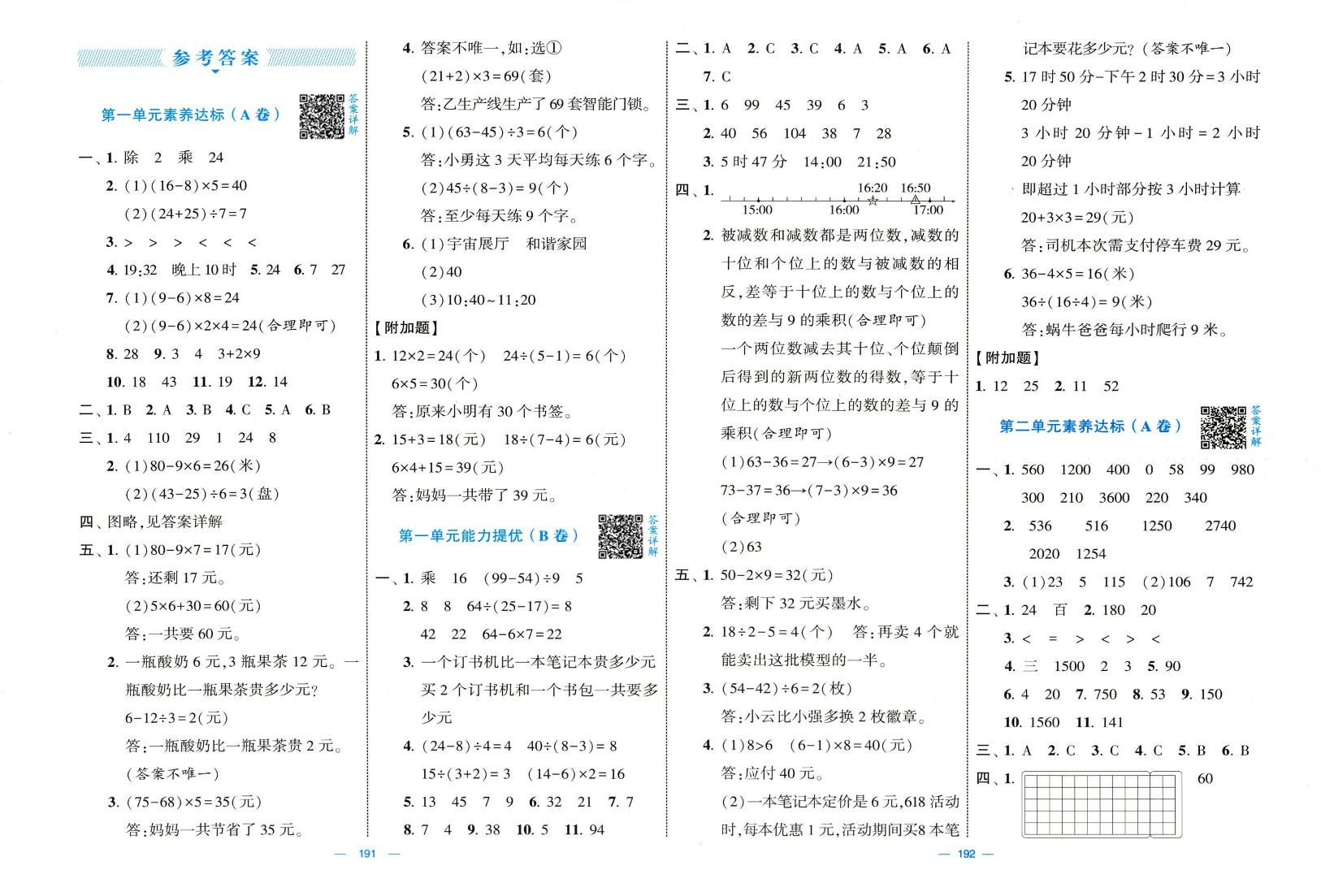 三(上)数学苏教版【25秋《学霸提优大试卷》答案解析】