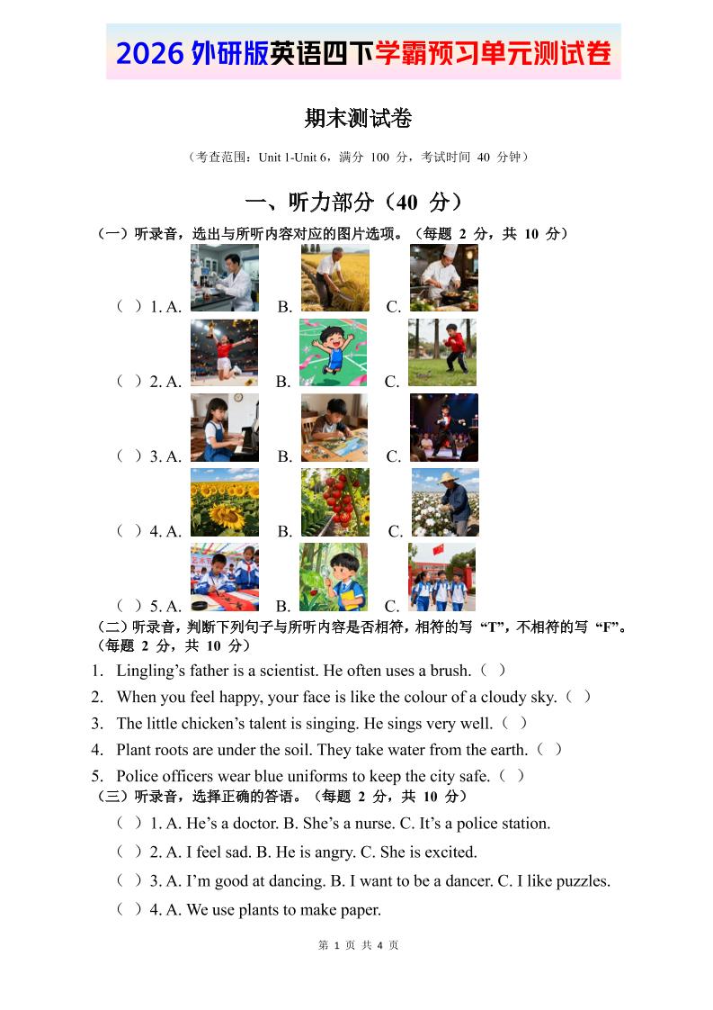 2026外研四下英语试卷 期末1