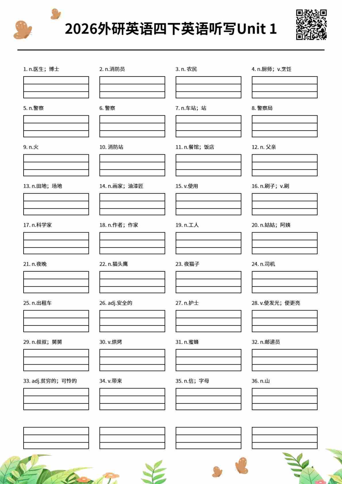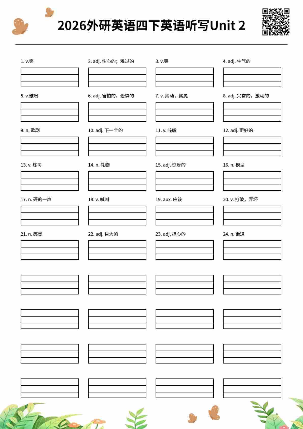 2026春外研四下单词批注 Unit 6