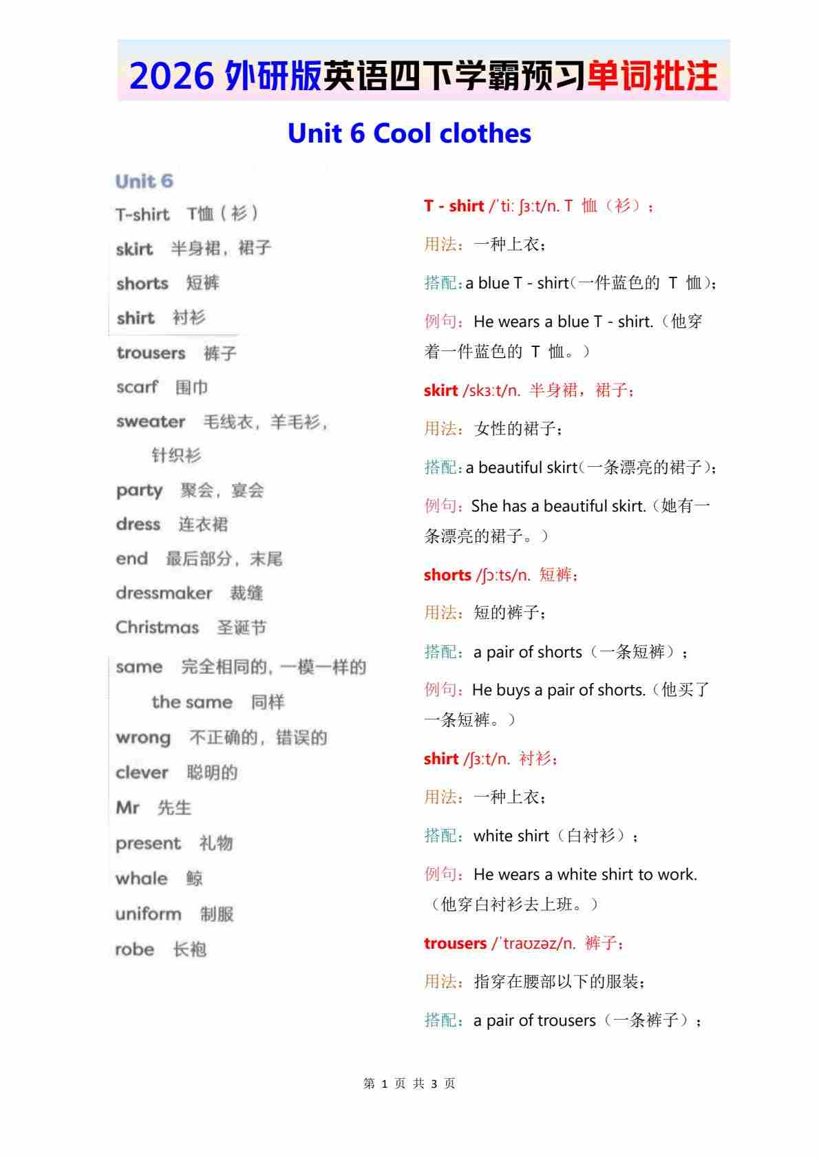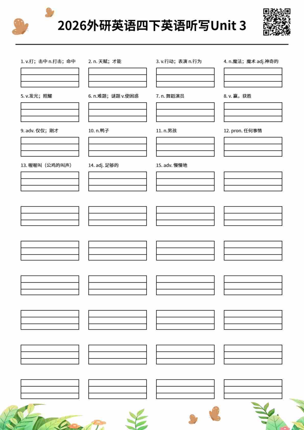 2026外研英语四下英语听写Unit 3