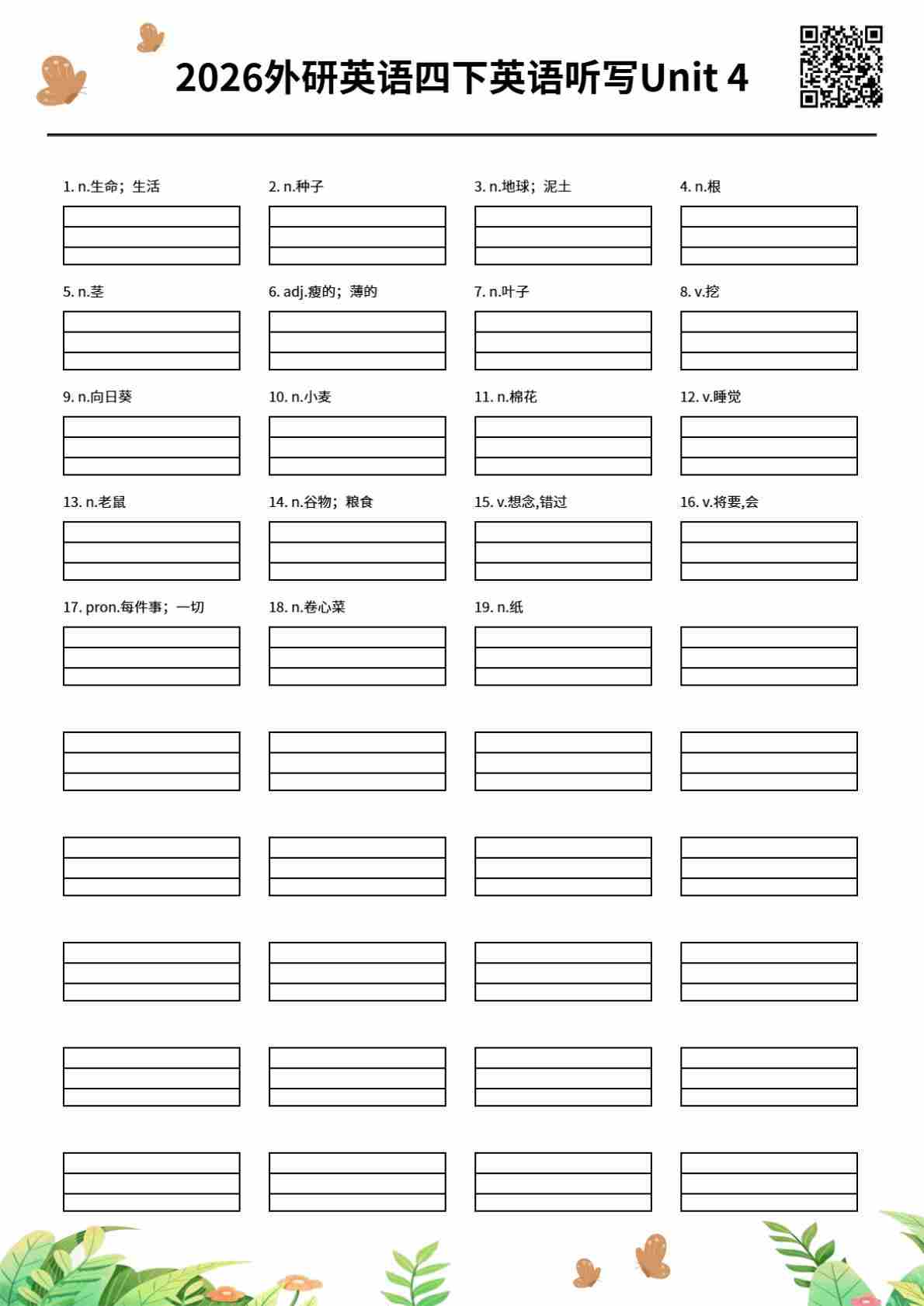 2026外研英语四下英语听写Unit 4