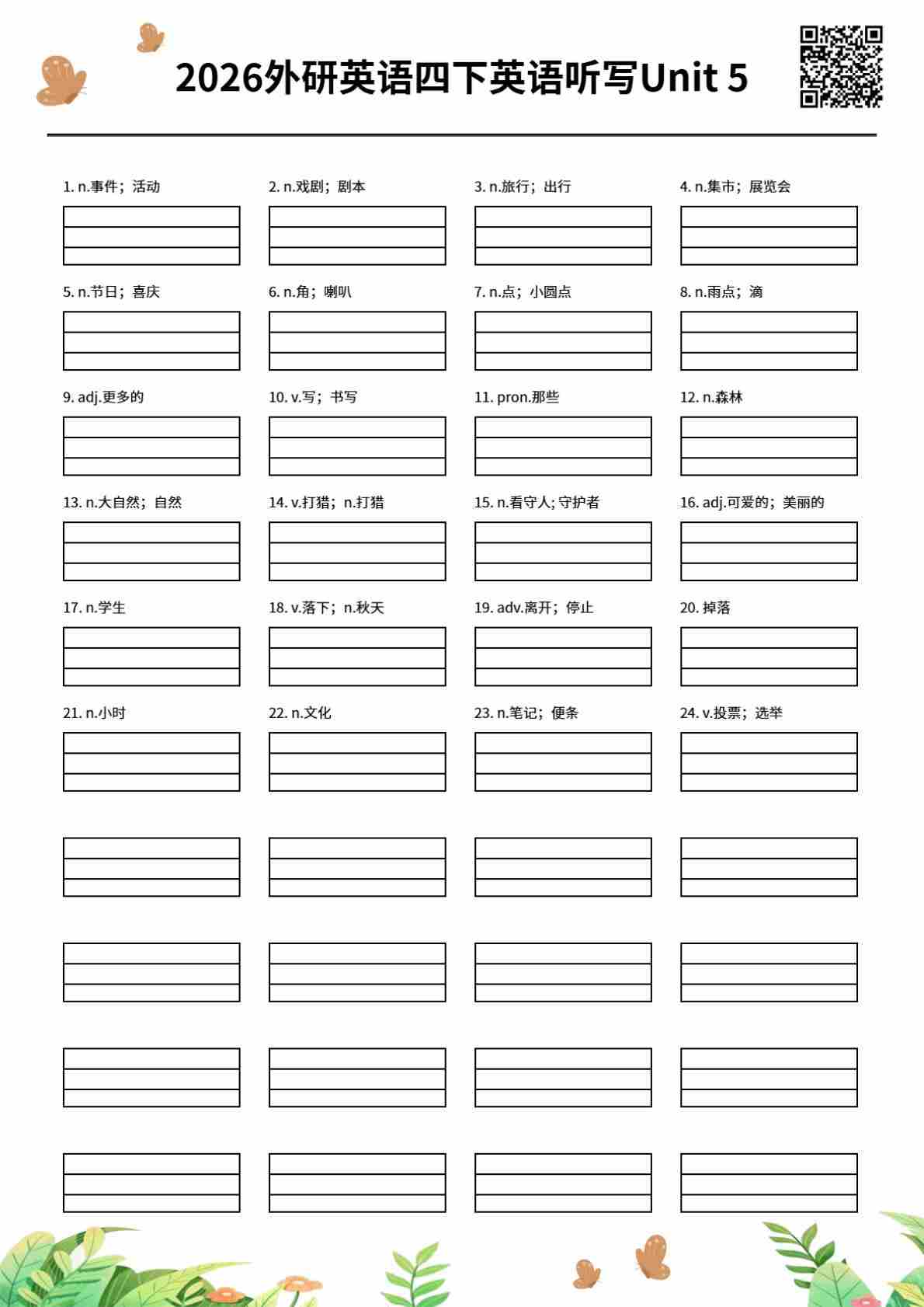 2026外研英语四下英语听写Unit 5