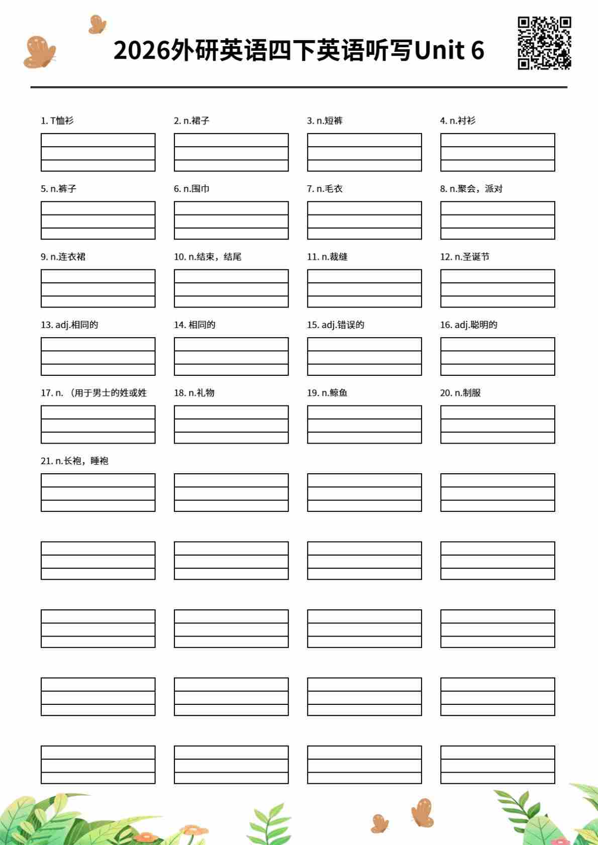 2026外研英语四下英语听写Unit 6