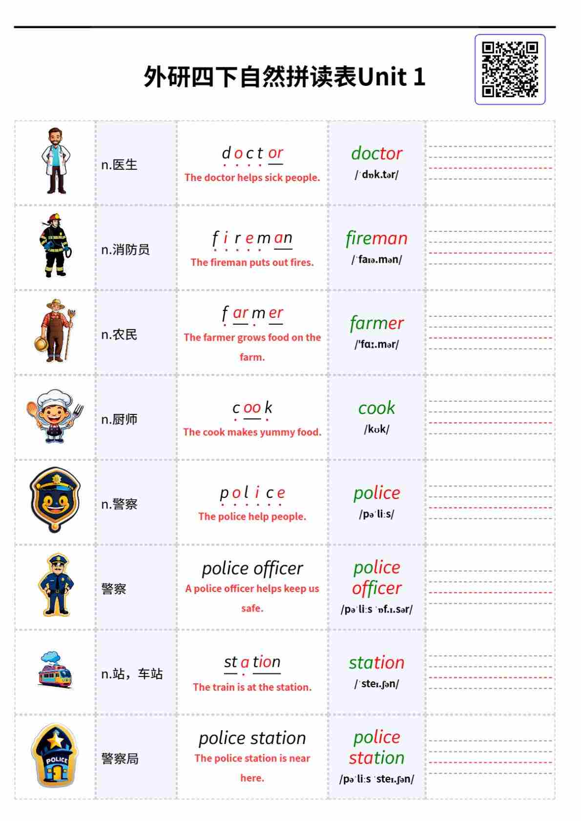 外研四下自然拼读表Unit 1