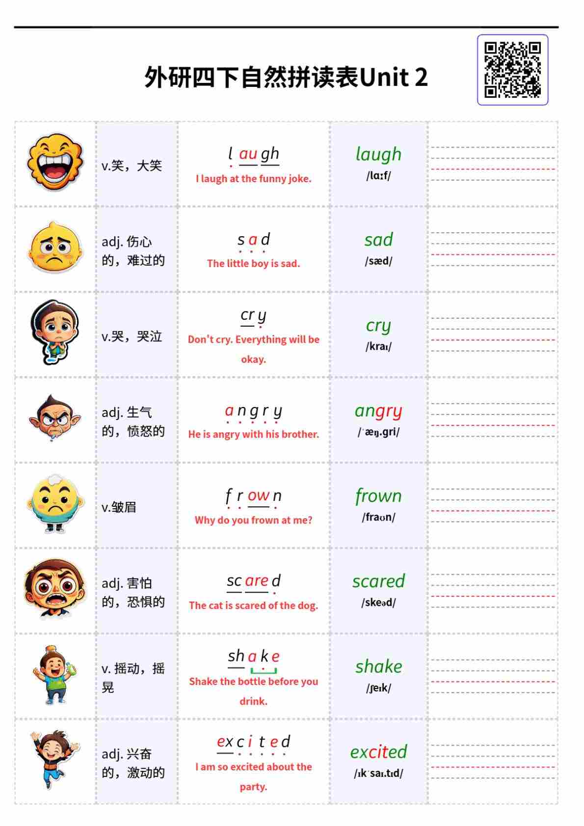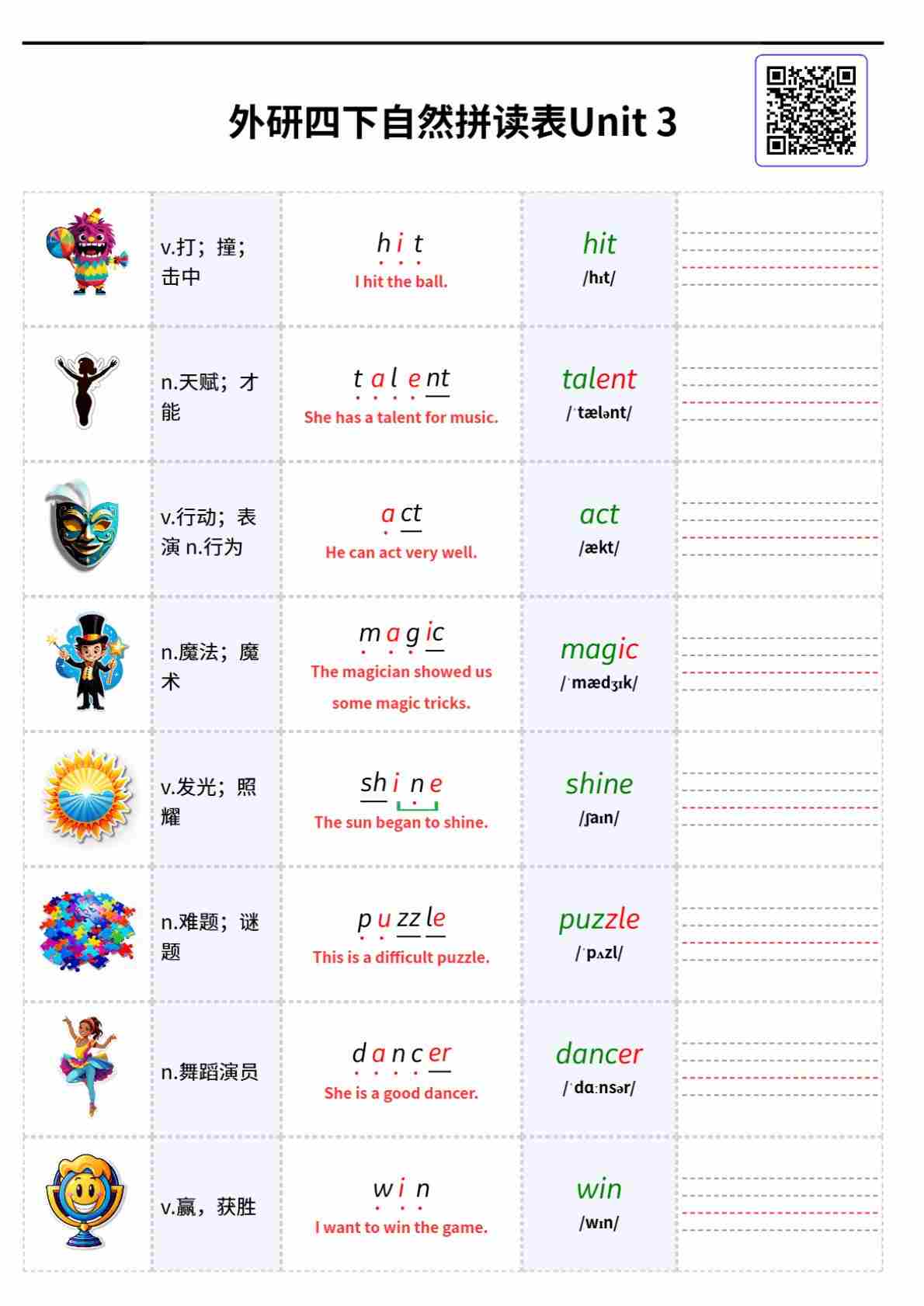 外研四下自然拼读表Unit 3