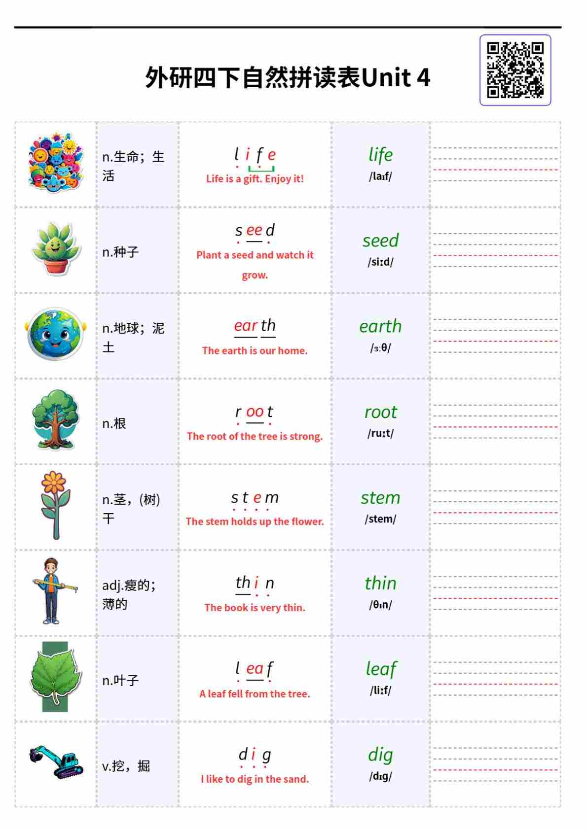 外研四下自然拼读表Unit 4