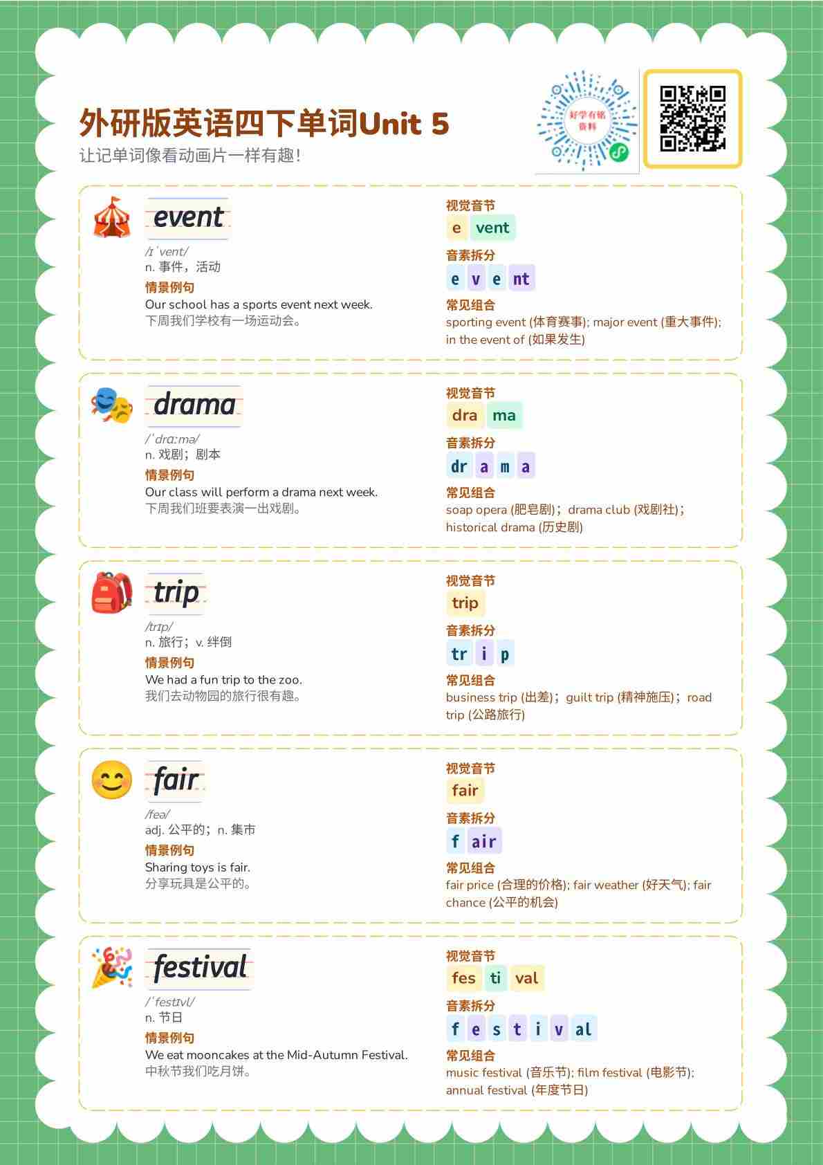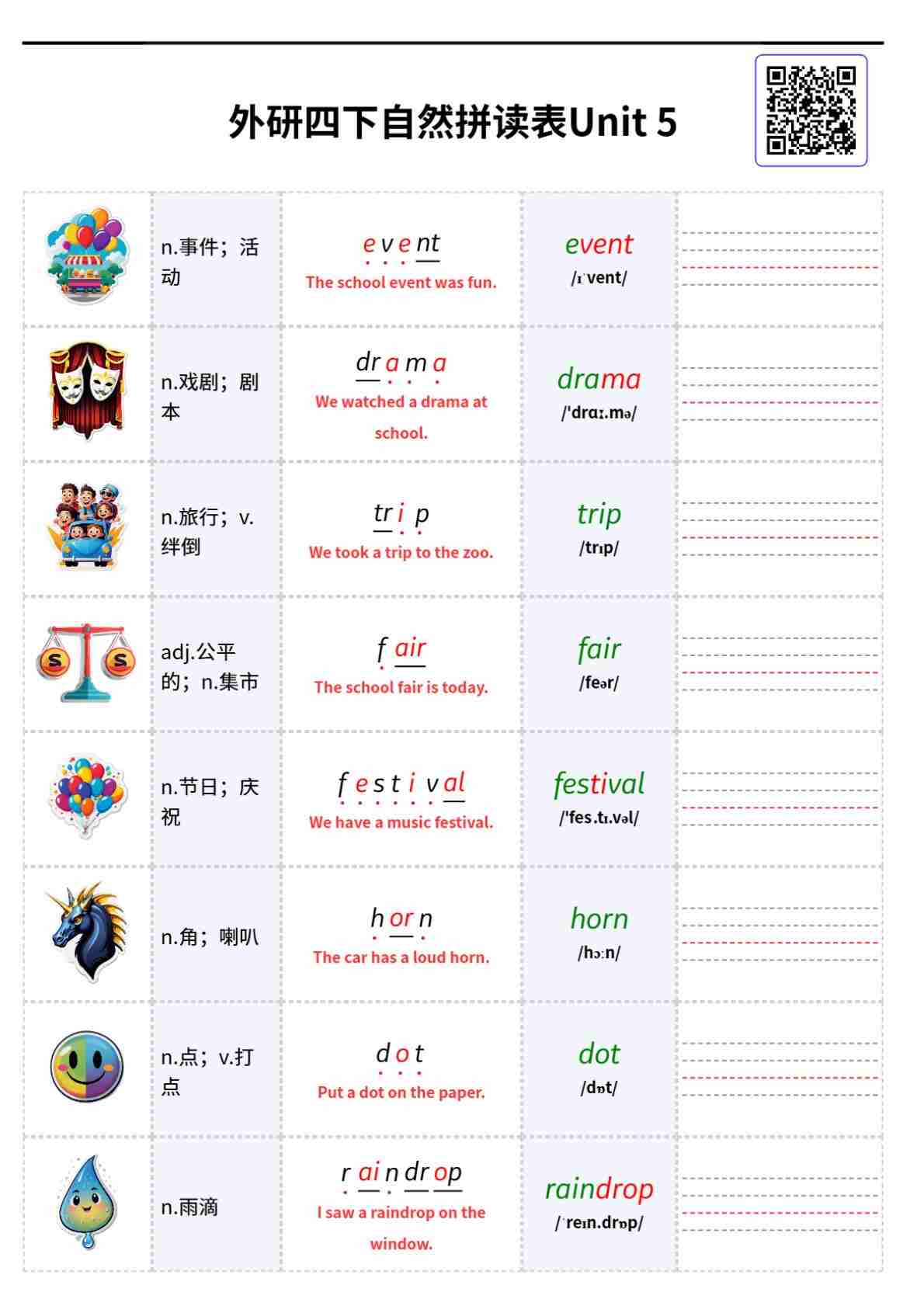 外研四下自然拼读表Unit 5