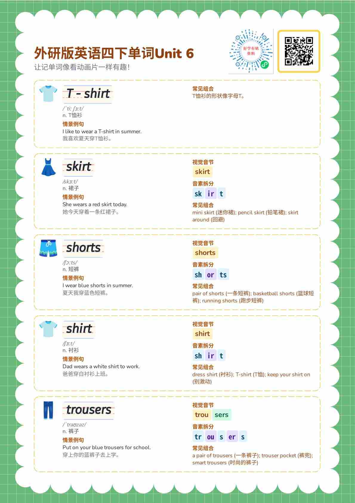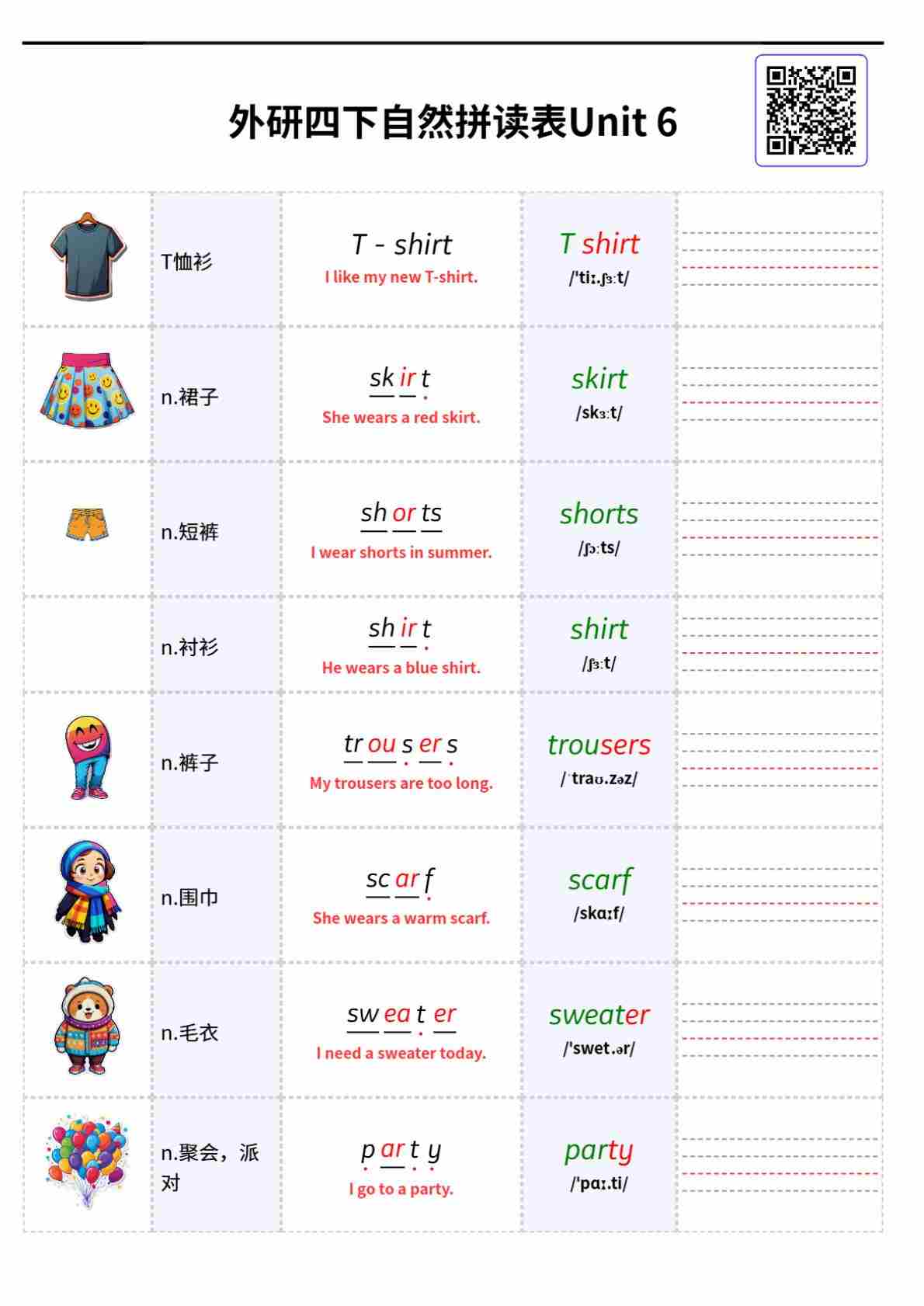 外研四下自然拼读表Unit 6