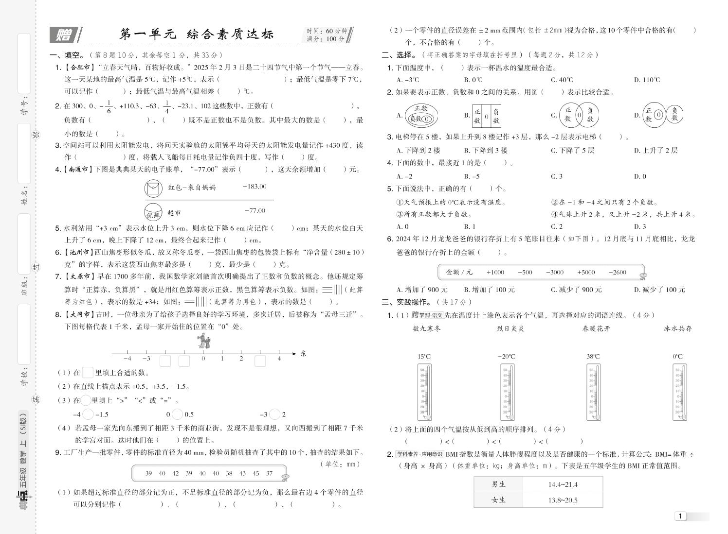 五(上)数学25秋苏教:单元测试卷( 典中点 )