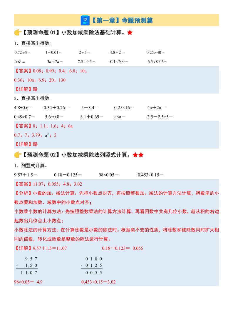 五(上)数学通用版【重点公式与必背知识汇总】
