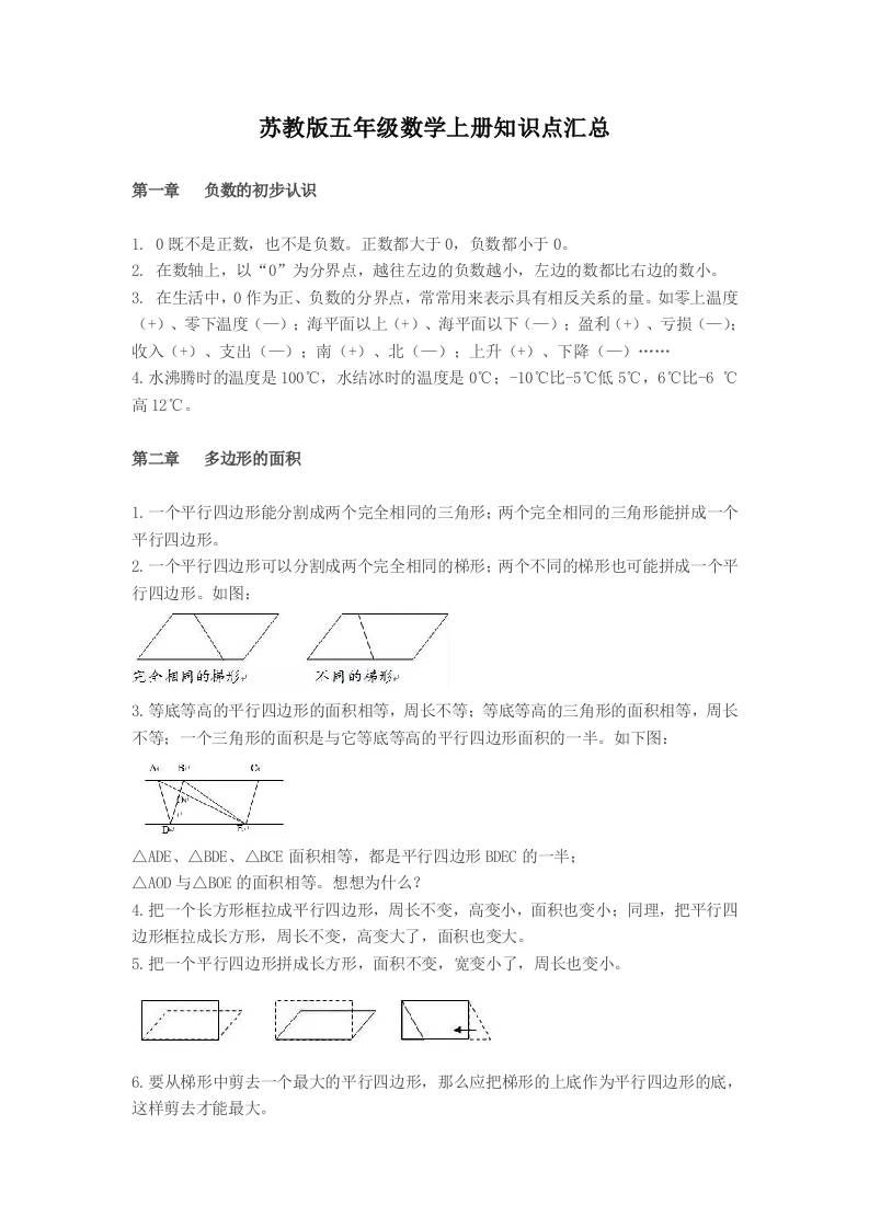 五(上)数学苏教版:知识点汇总预习