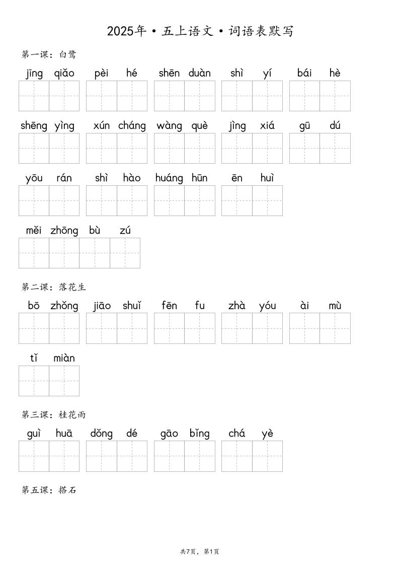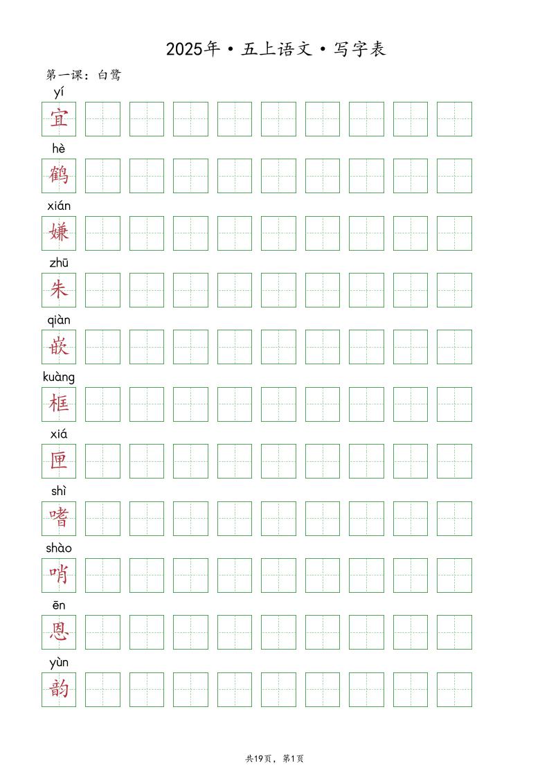 五(上)语文【2025年-抄写写字表(19页)】