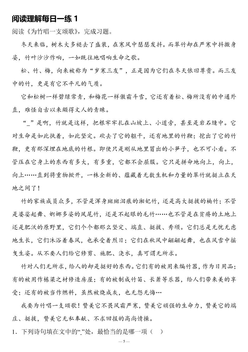 五(上)语文【阅读理解每日一练】