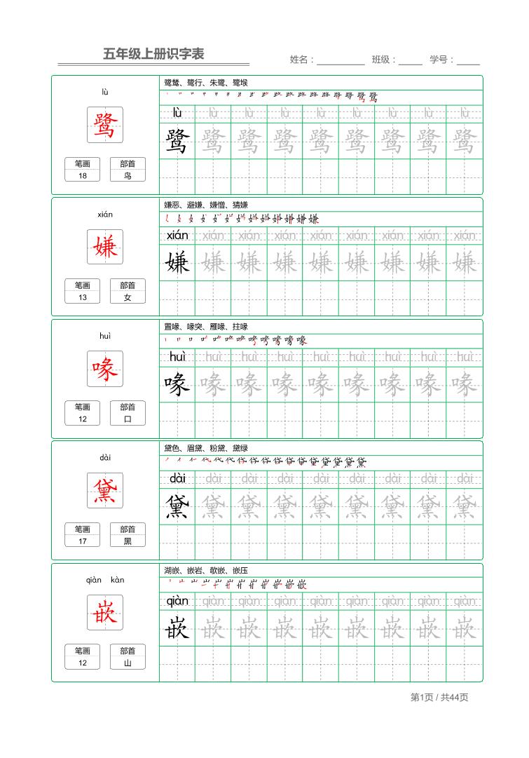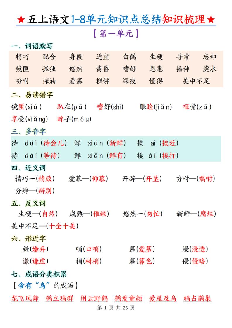 五(上)语文 1-8单元知识点总结知识梳理26页