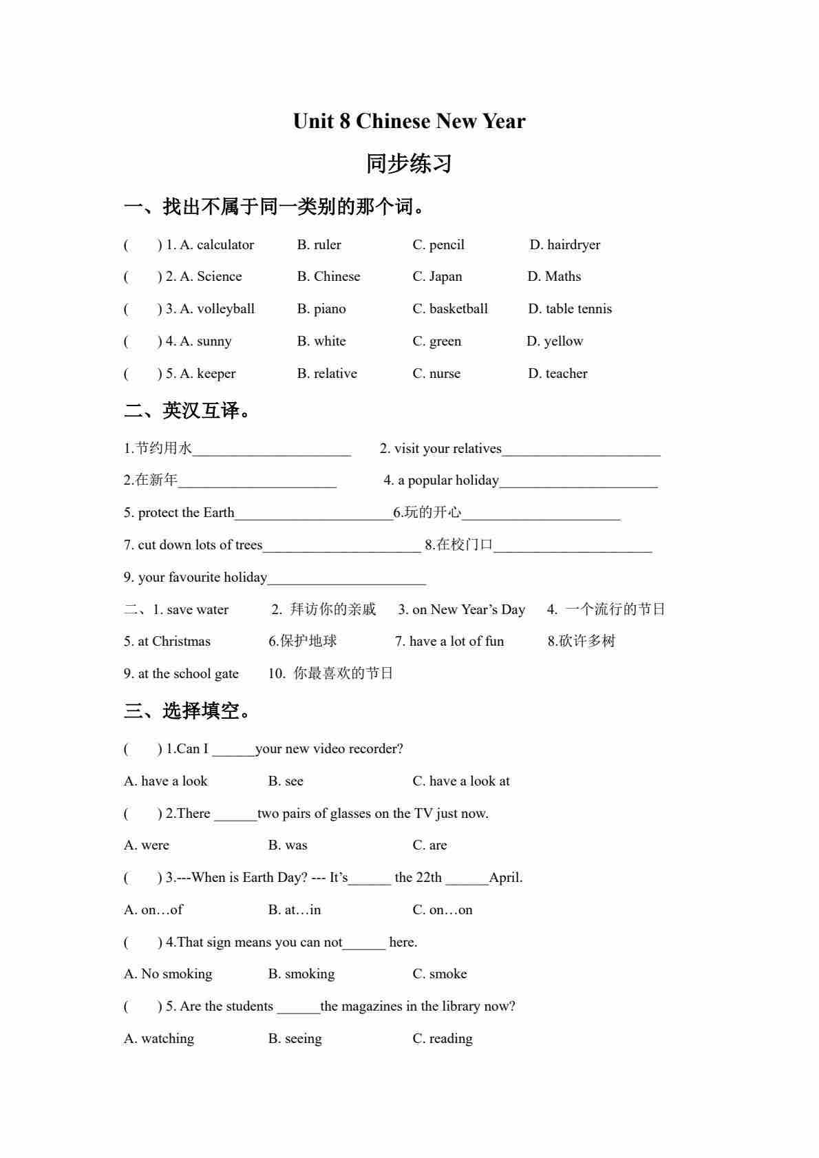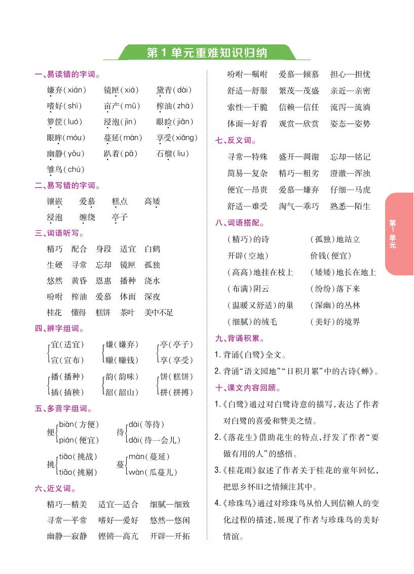 五(上)语文(答案)1-8单元阅读考点与答题模板