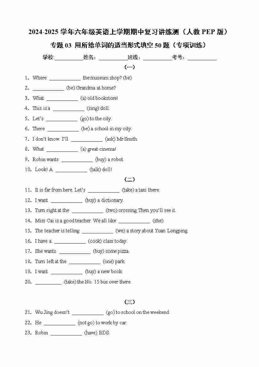 专题03用所给单词的适当形式填空50题(专项训练)
