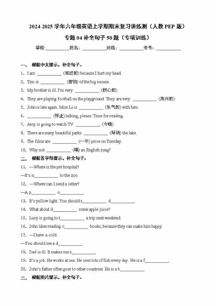 专题04补全句子50题(专项训练)