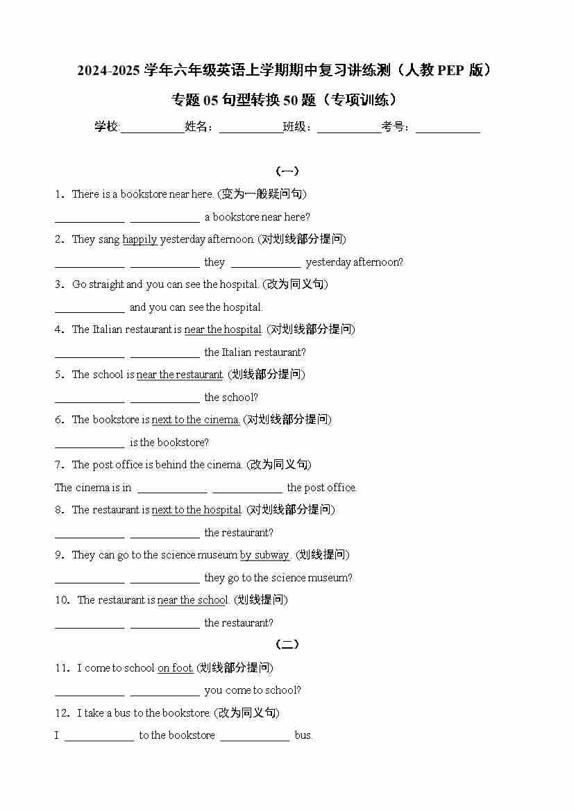 专题05句型转换50题(专项训练)