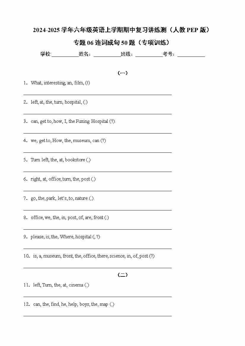 专题06连词成句50题(专项训练)