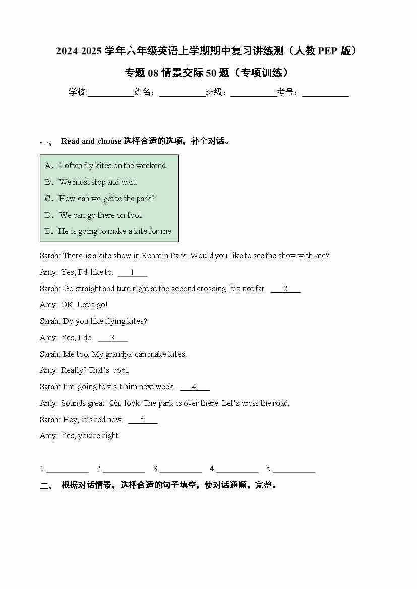 专题08情景交际50题(专项训练)
