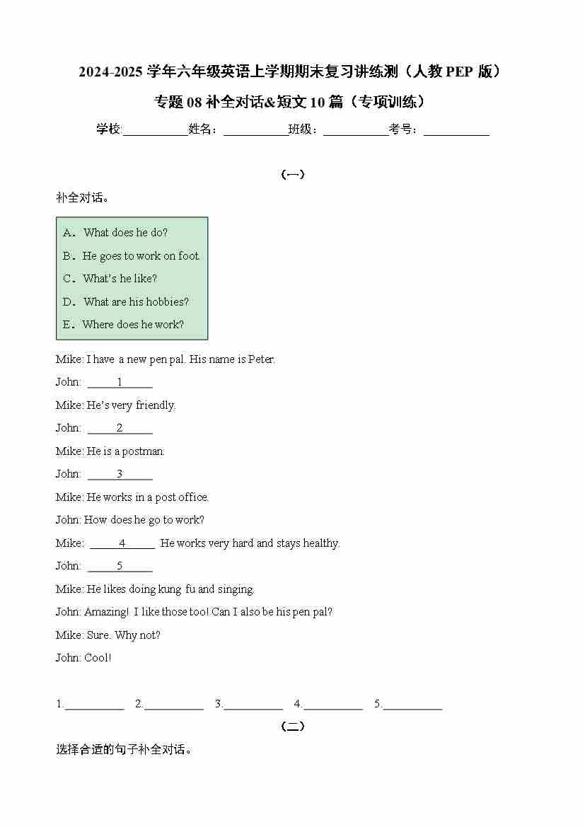 专题08补全对话&短文10篇(专项训练)