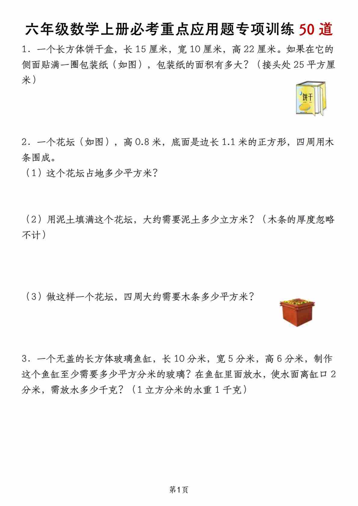 六(上)数学苏教版《六年级数学上册必考重点应用题专项训练50道》_